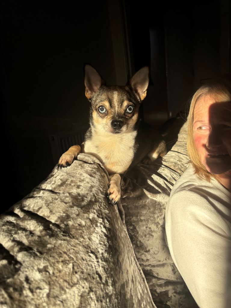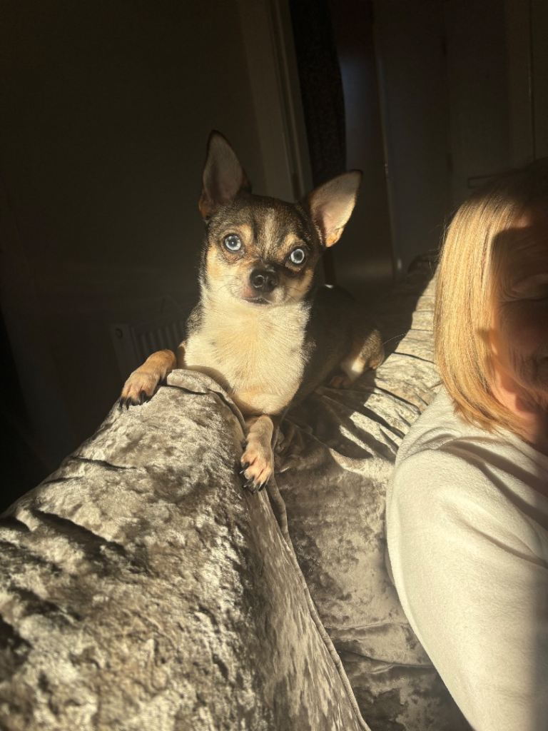 Lovely little companion I’m only selling as I’m about to have a baby and feel guilty as I won’t have much time to walk or play with him he’s very sweet can be vocal on walks as expected for chihuahuas lol he’s overall friendly with other dogs just cheeky sometimes he’s good with kids