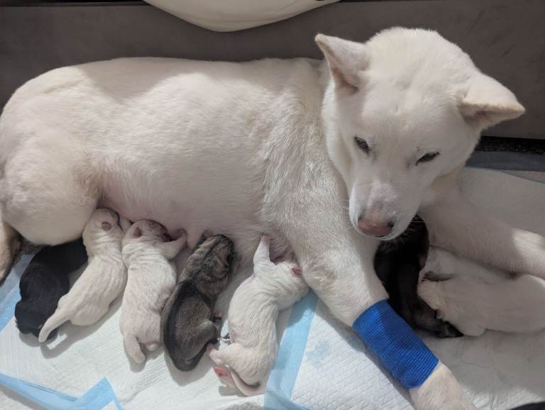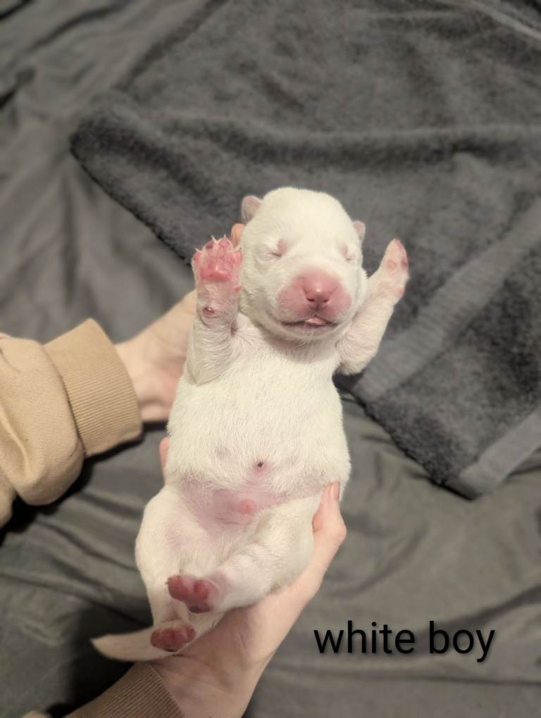 Out stunning girl sharna has has a suprise litter of 6 beauties for sale are 4 stunning boys and one gorgeous little girl. This was a suprise litter as after we had bought Sharna we found out she was already pregnant Sharna is a full huskita and from what we know the dad was a huskita mixed with a German shepherd they will be ready to leave from the 2ND MAY and will all leave microchipped flead And wormed and leave with a blanket with mums smell on it. Please feel free to message with any questions 😊 will update with pictures as they get bigger