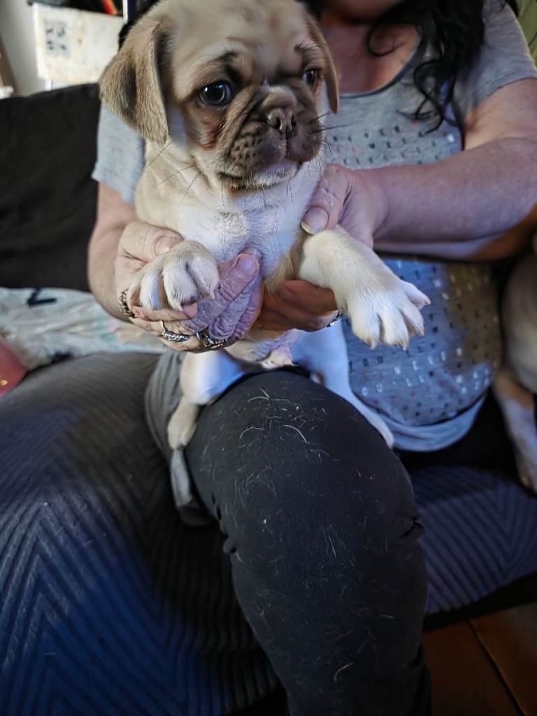 I have two stunning beautiful panda pug puppies forsale female is a chocolate panda and boy is a chocolate fawn sable panda pug can see mum and dad as they are family pets used to household noises raised with cats dogs children love cuddles and attention very healthy chunky puppies ready for there forever loving homes kc registered microchipped wormed flea treated come with 5 weeks free insurance also will leave with a puppy pack blanket toy food to start your baby off vet checked