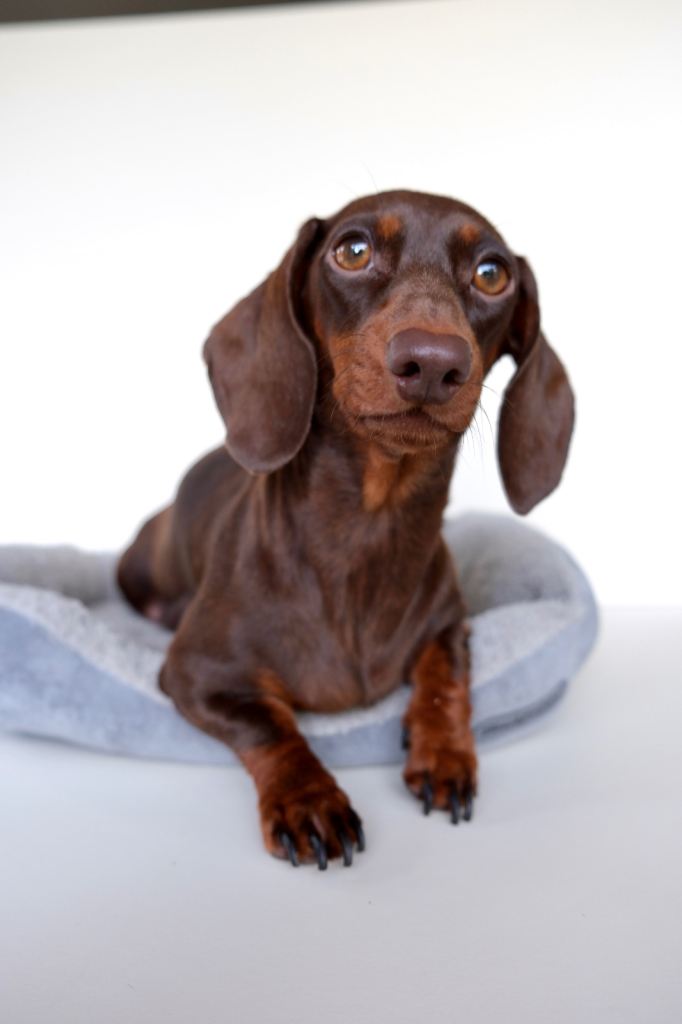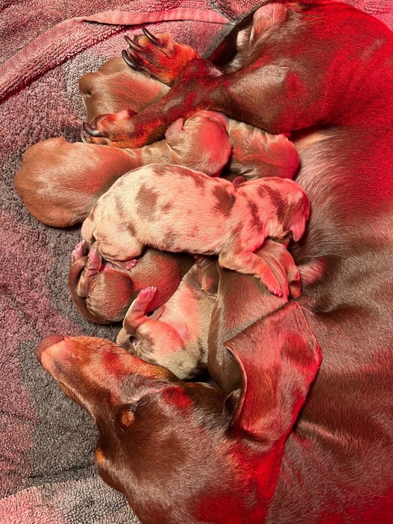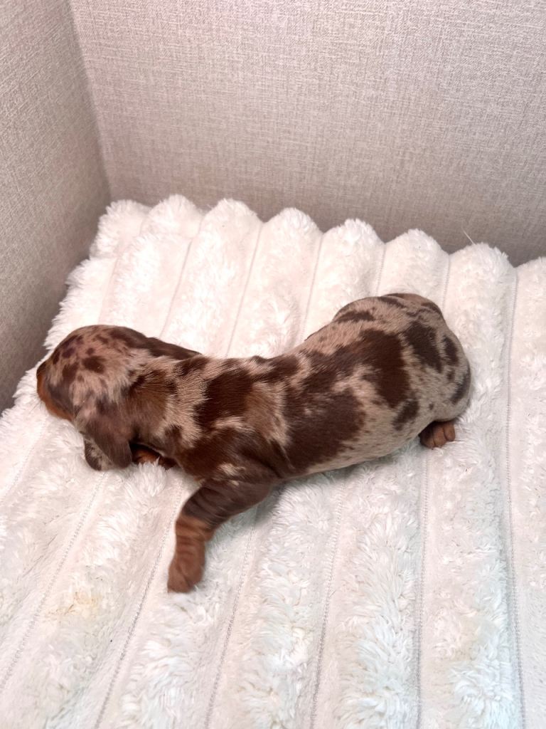Mum, Darcey, is our much-loved family pet. (Pictured in last picture) She has a fantastic temperament and is a beautiful chocolate Mini Dachshund. The dad is a miniature Isabella dapple dachshund. Both parents are IKC registered.