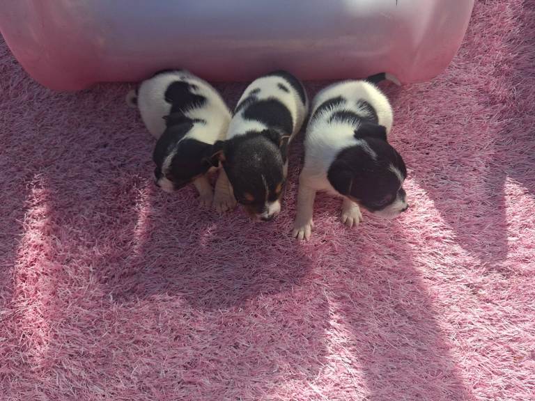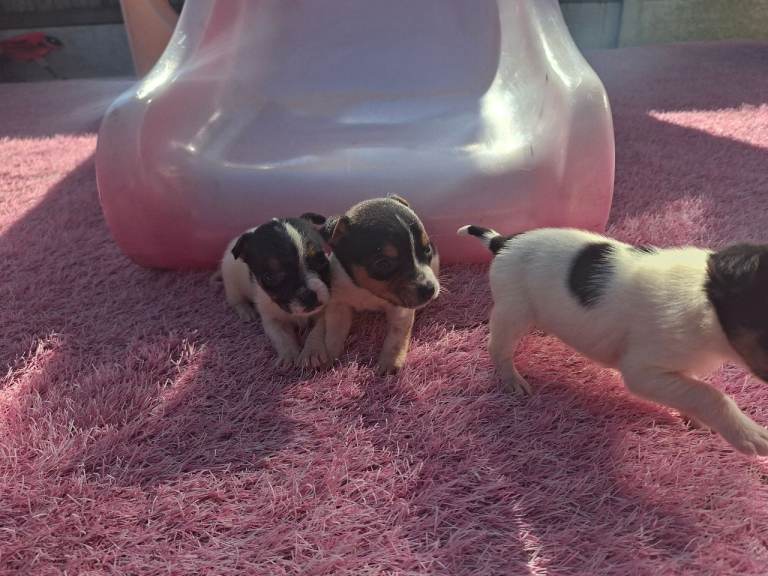 Here are 3 gorgeous little girls for sale. Mum and dad are short legged jack russells. All pups will be wormed and fleed all up to date before leaving and have first Vaccination and be micro chipped. Viewing is welcome and will be asking for a £50 non refundable deposit to secure pup of your choice please call or txt for any more info thanks