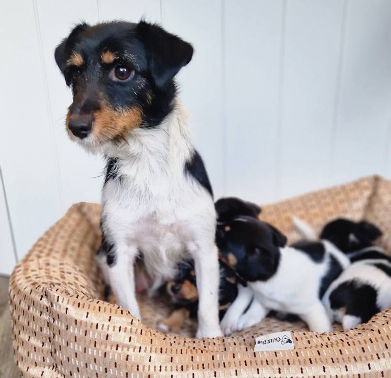 Dad is a highly intelligent dog therefore this will make their offspring easy to train. The Jack Russell is a popular breed due to them being so lovable, easy to train.