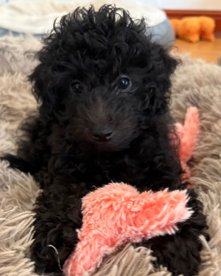 The puppies have a lovely solid black curly coat.