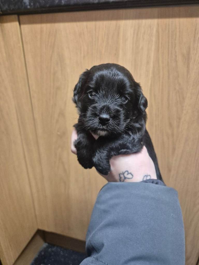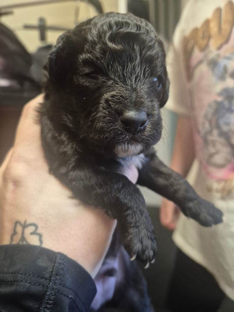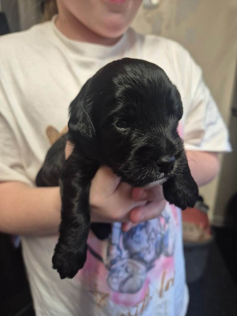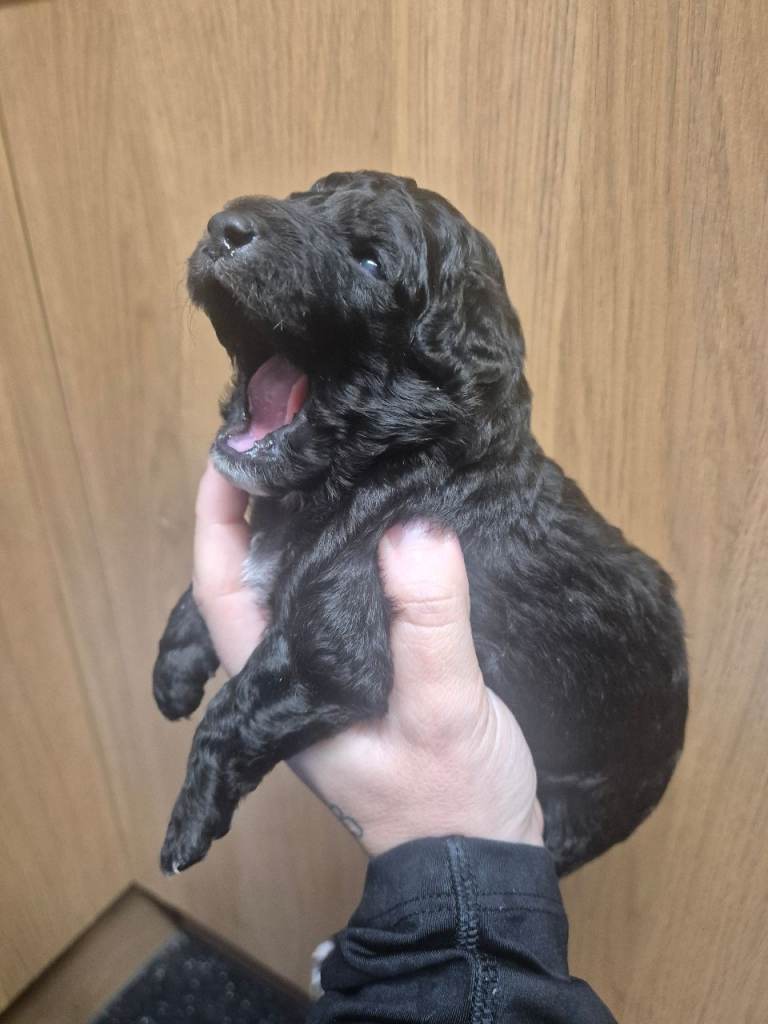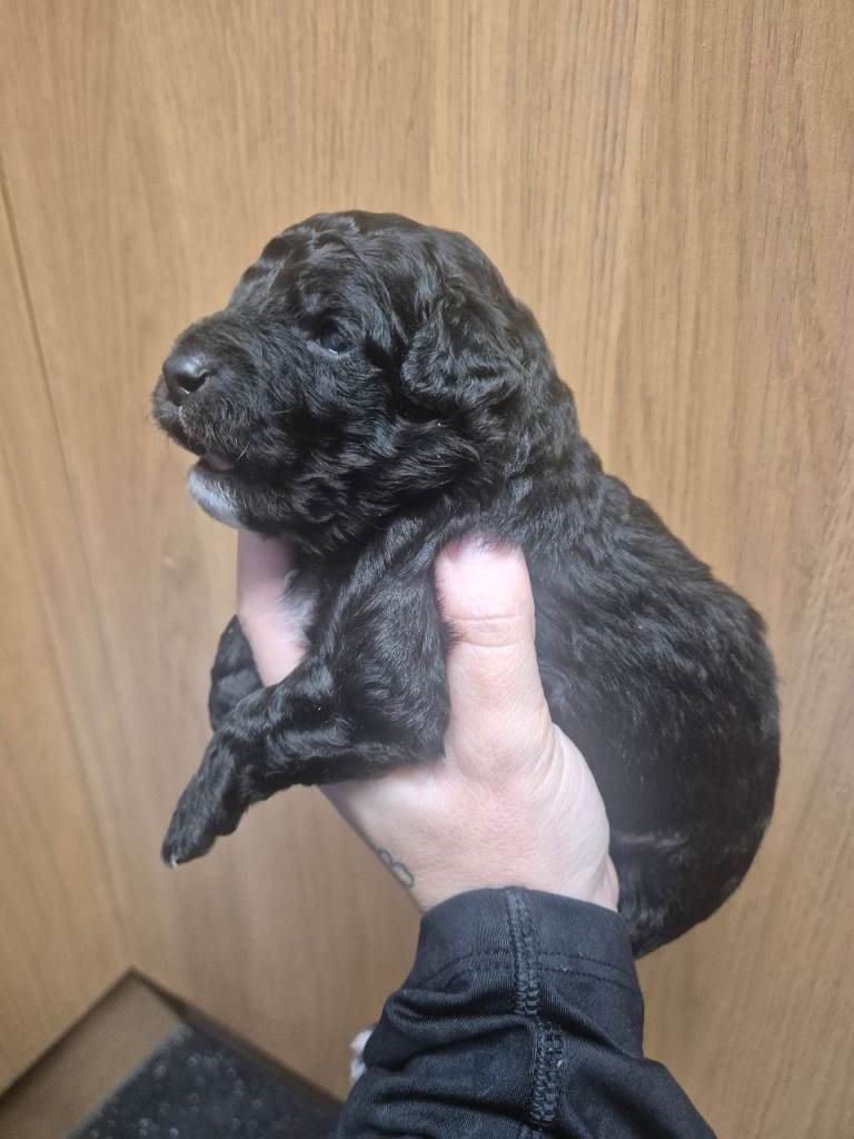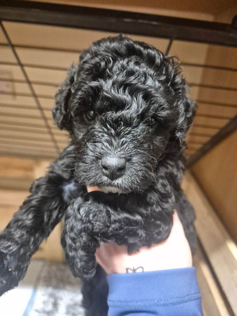 There are 2 longer haired boys and one has short these puppies will not moult as dad is kc reg chocolate toy poodle. Puppies will be wormed flead mirco chipped mum can be seen with these babys 200 non refunderable deposit to secure your puppie any questions just ask x