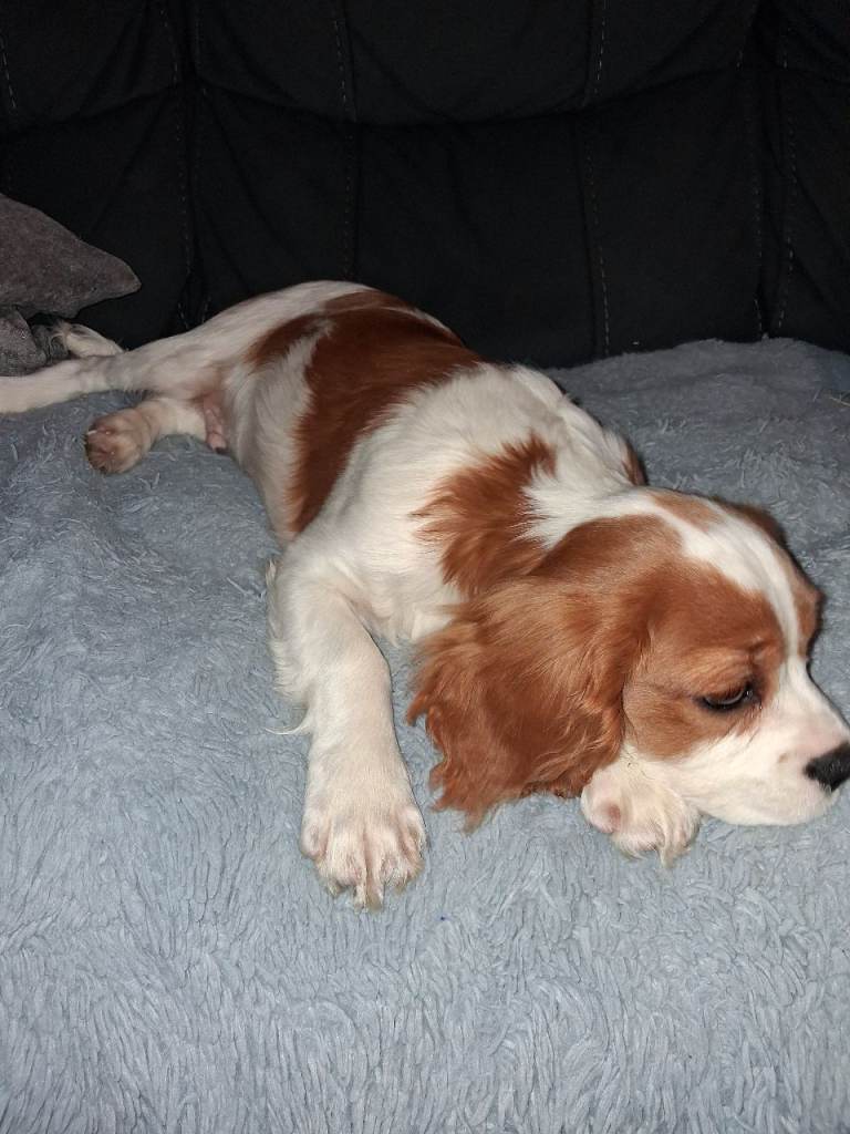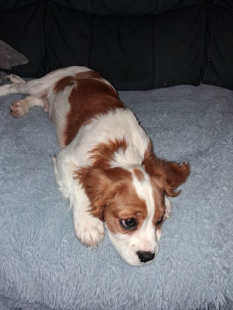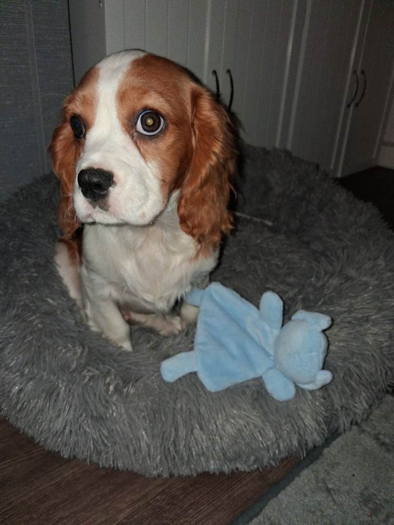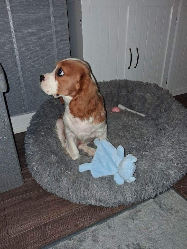 Beautiful 16 week old cavalier king charles for sale. We bought this little boy at the weekend but unfortunately are looking to rehome him after realising we don't have enough time to give him. He is kc registered,fully vaccinated and microchipped. Almost fully potty trained. He is a great little pup,loves his walks and been great around my children. He just loves to be around people and will happily snuggle up on the sofa for hours with you! He will come with all the accessories we have bed, food,toys etc. Any questions please email me, thanks