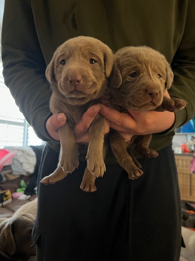 I have a beautiful litter of silver Labrador pups 5 girls 4 boys they are totally adorable health tested parents pups come with 1st vaccination microchip puppy pack food 5 weeks free Insurence I take £150.00 deposit to hold pup full receipt given feel free to call for any info pups will be ready to go to their for ever home beginning December end of November