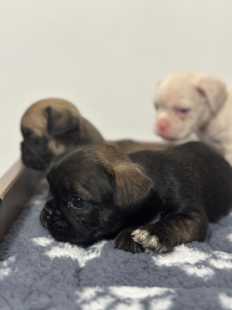 If you're looking for a wonderful companion, bred for health and temperament, with unique traits due to our interest in DNA and genetics, we are very proud to present our beautiful French Bulldog puppies for sale. Our pups are microchipped, vaccinated, dewormed, KC registered and health-checked, giving you the peace of mind that you need.