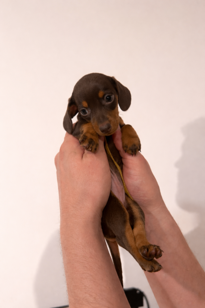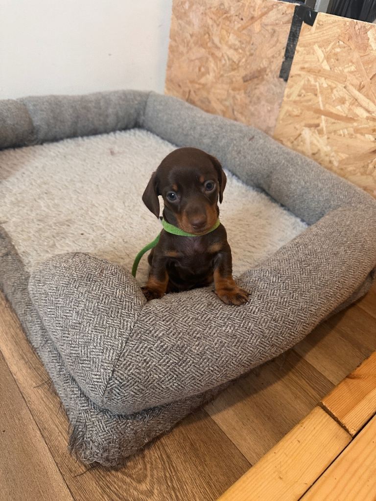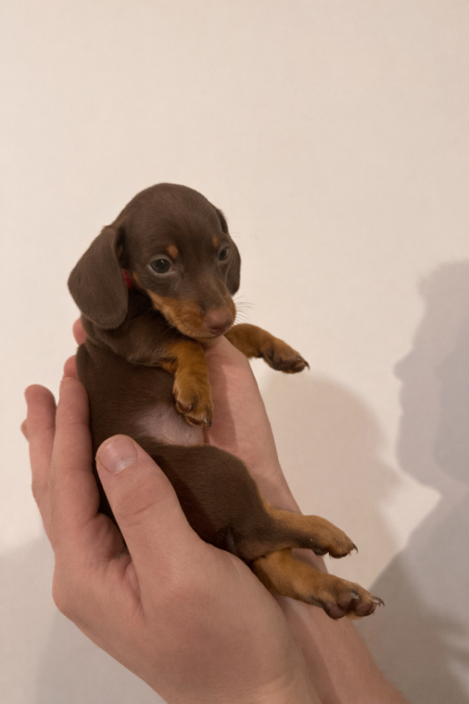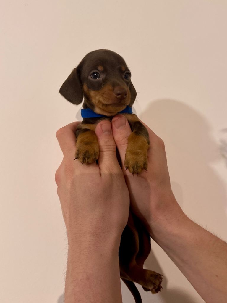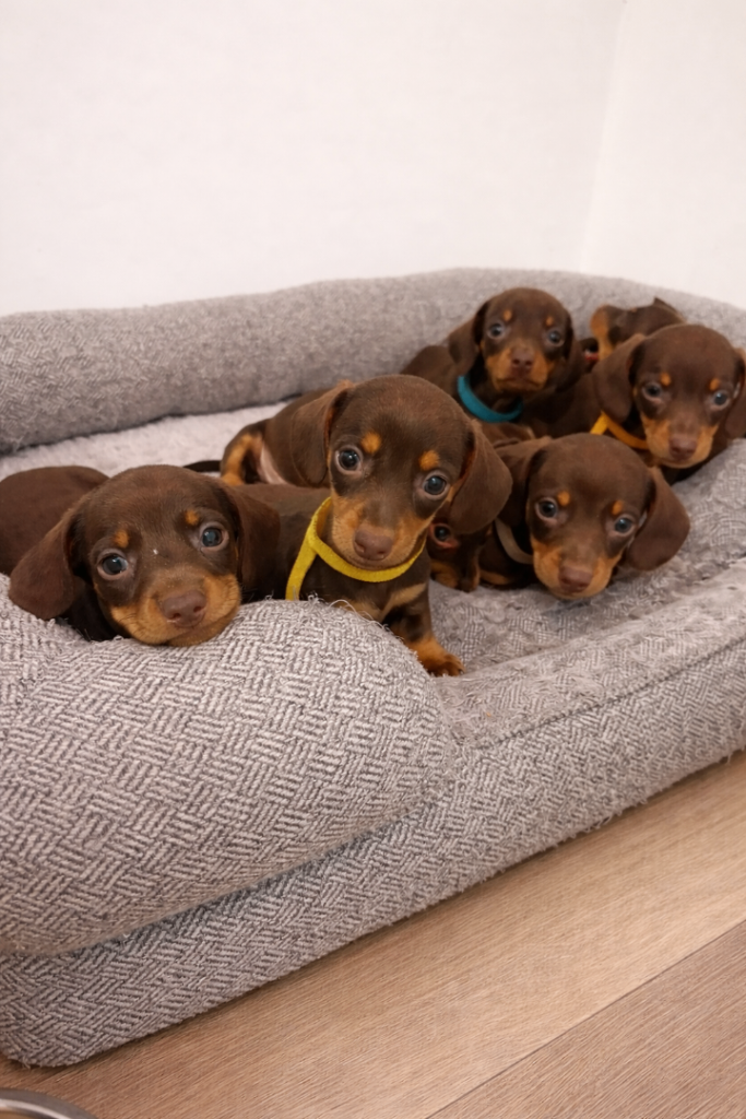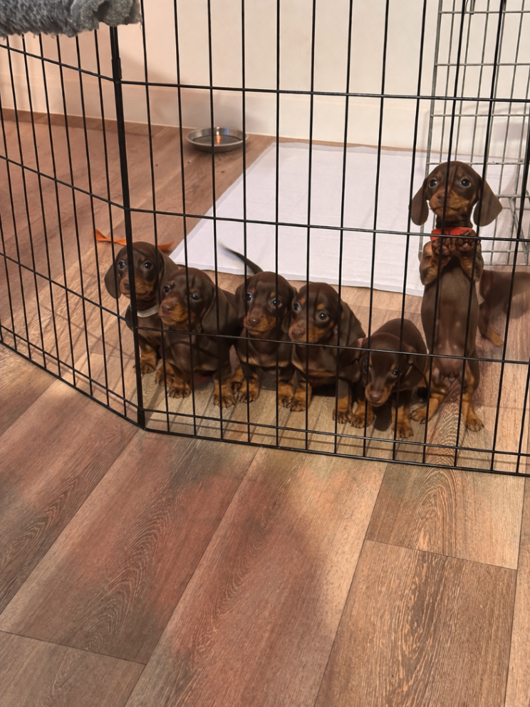 We have a beautiful litter of 8 chocolate and tan dachshunds for sale