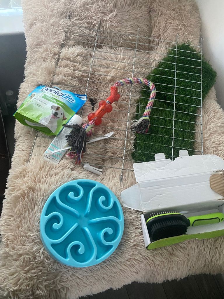 She is 4 months old, very well behaved and potty trained. She has had both her vaccines, is microchipped and worm and flea treated. We have dog food, toys, crate and other essentials that is included.