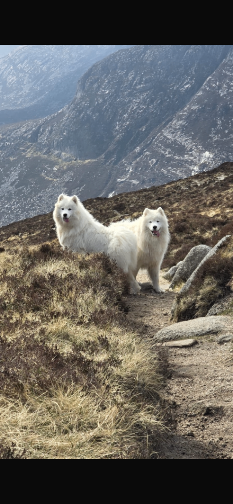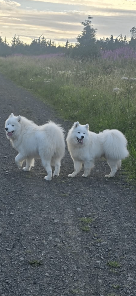 They have the classic bear-like Samoyed features, thick fluffy coats and the famous Samoyed smile, with wonderful friendly temperaments.