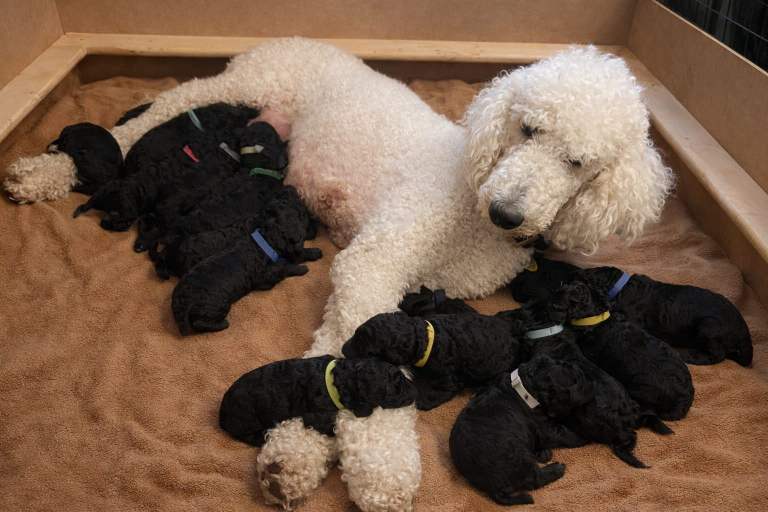 Bella is a truly wonderful mum. She is extremely loving, incredibly intelligent, and full of fun. She has a playful nature and a strong desire to engage with people, making her a joy to live with and a fantastic example of the Standard Poodle temperament.