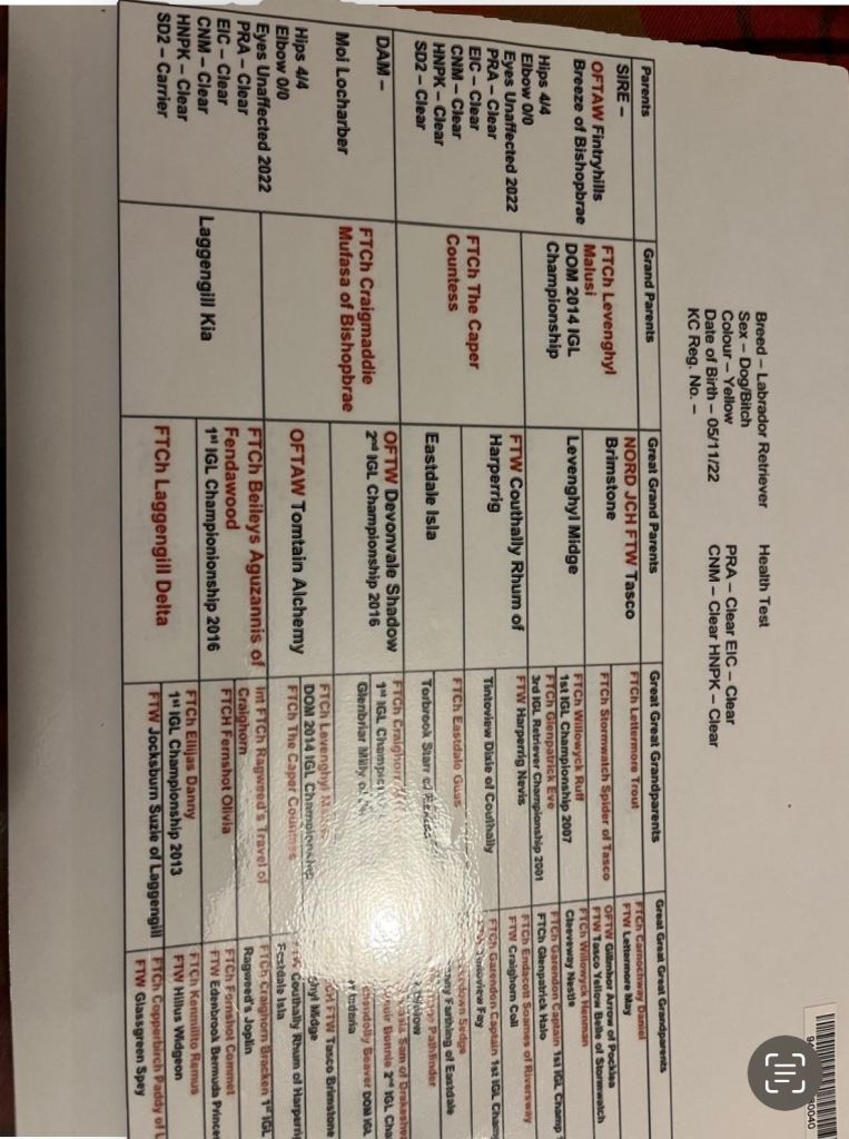We have a litter of lovely Labrador retrievers available both parents are great workers with the sire being a multiple field trail champion. Both pedigrees are extremely good meaning the puppies will be excellent workers or lovely pets. We have six dogs in the littler all varieties of yellow.