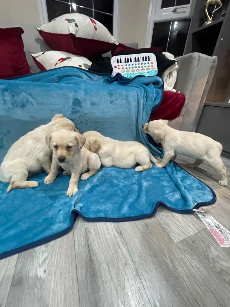 Beautiful nine week old Labrador puppies flea wormed had their first jabs ready for there new homes 4girls 2boys all been health cheeked very healthy
