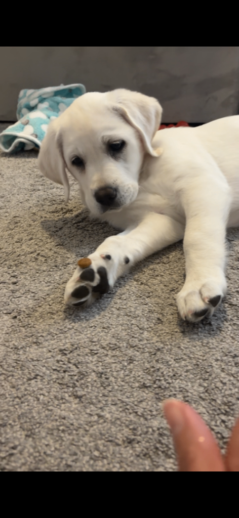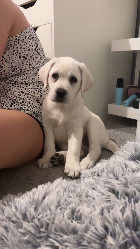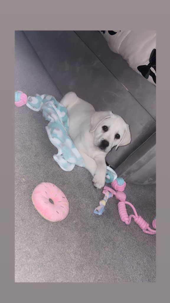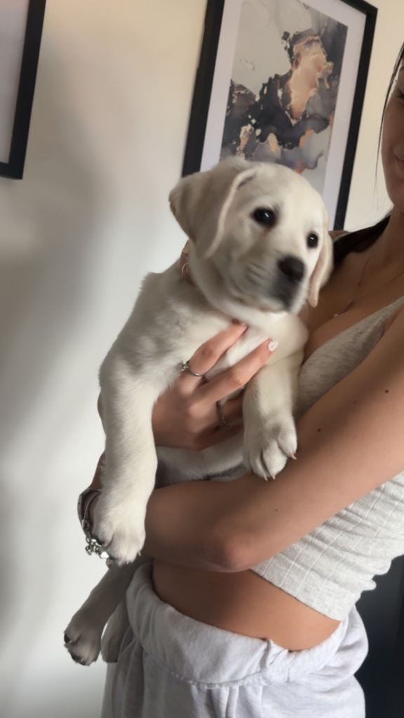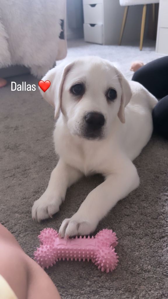 Hi this is Dallas 9 week old female white lab kc reg microchipped de flead wormed and crate trained. Due to no fault of her own we’re looking for a loving home for Dallas. She’s surrounded by kids sleeps in crate from 10pm until 9am she’s fed 4 times a day. She sits paw kisses and leaves her food before you say get it. She does pees and poo in the garden and will let u know in crate if she needs out, she loves play time but labs are very sleepy puppy’s and she tires out quickly, we have not let her sleep on beds or furniture when she’s sleepy she goes into her own crate/bed. That was just our choice. Dallas comes with her paw hut crate in photos. Her dog matress from pets at home a basket full of toys. Lead collar, She’s on hilife puppy food which is chicken rice pumpkin and peas and I have 4 boxes and 5 on route for delivery which will keep her going a while food wise. she also has kibble full un opened bag. We’ve never used puppy mats never needed to. Also a puppy cam bran new which we use to watch her sleep or check in when we nip out it’s sound and motion detection. She’s due her last jag on the 27th. Pedigre paper work and certificate of pedigree 5 generations plus her vaccination card and food schedule. She’s been surrounded with kids age 9 and 16. Been in cars. And all the first few weeks of training has been done. Due to health we are seeking a home for Dallas. Someone who will love her and keep up the training we’ve done with her. Falkirk area and welcome to view and can send photos videos of al training and interaction with us. She’s a bright puppy and eager to learn and with health issues and no help it would not be fair undo our hard work and her not have the same interaction as we have been doing. Please only genuine enquires only. Looking for £1500 that’s for Dallas and her whole belongings and enough food and toys bowls bed ect that no one needs to purchase and the stuff she loves and has adapted to. We did go a bit crazy buying her lots of stuff but she loves them her paw hut she runs into it and it’s her safe space. But if u already have a set up and don’t require it then let me know. Her puppy shampoo she loves a shower and her wipes we use on her paws after she’s been outside or eating. 5 star homes only or please as we need peace of mind she’s going to be loved and took care of as much as we have done. Thanks for reading. £2000 ono for the right home. Due to health a home is required asap. If items u don’t need or want please let me know on price. For my number drop me a message. Falkirk area.