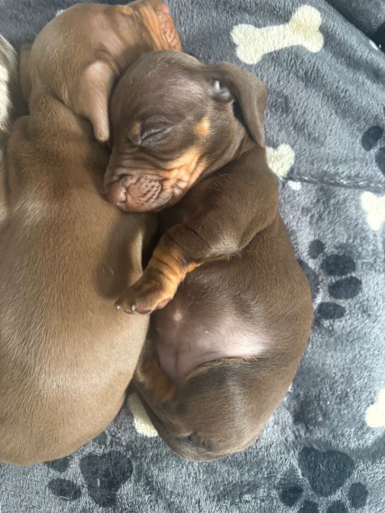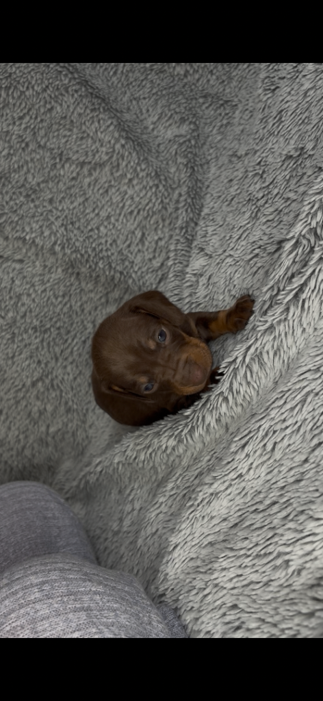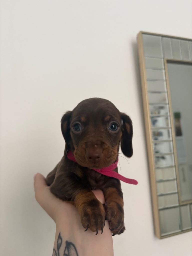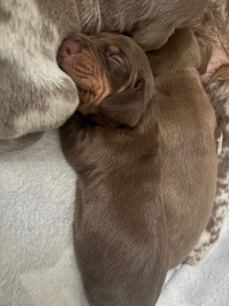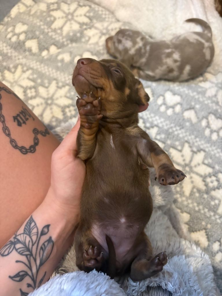 Mom is chocolate miniature dapple Kc registered who has the best temperament she’s so laid back and takes everything in her stride.