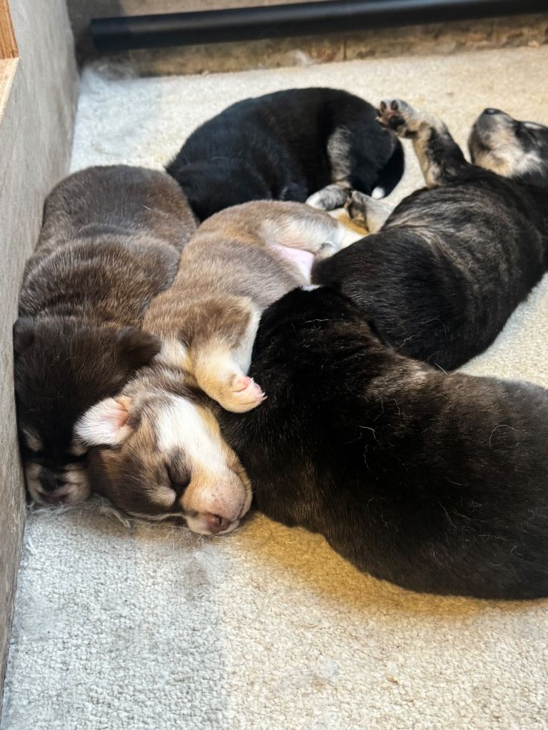 Ready to leave!! Last girl left!! Husky markings with Labrador temperaments, you can’t go wrong! All 5 puppies in this litter have a great mix of colours and are all loving and playful. Mum and dad are our family pets, mum is husky, dad is lab. The pups are fed on a raw diet as are their parents and it shows as they’re lovely and chunky with great coats. They’ve all been microchipped, had their first vaccines and fully health checked by our vets. Will leave with a puppy pack from ourselves and some food to see them through a couple of days so they can settle in. Second vaccine is paid for and booked in also, so if local you can arrange with our vets to take the pups in. Pups are ready to leave around the 2nd of February. Mum and dad can be seen. Please feel free to message any questions.