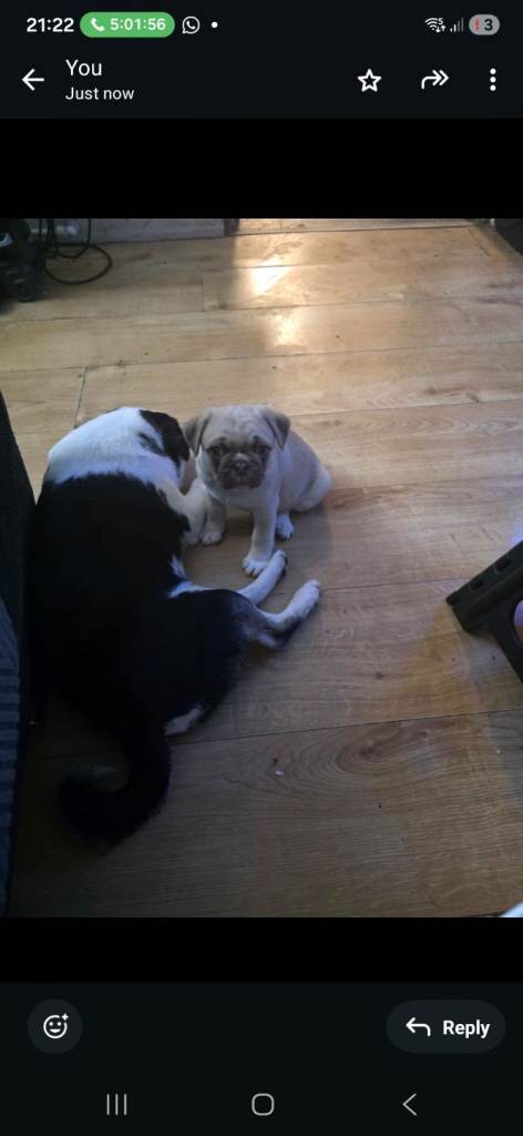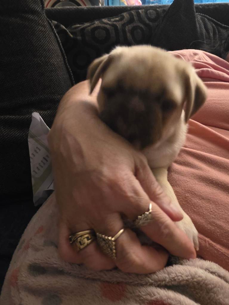 I have one stunning beautiful panda pug puppy boy forsale he is a chocolate fawn sable panda pug can see mum and dad as they are family pets used to household noises raised with cats dogs children love cuddles and attention very healthy chunky puppies ready for there forever loving homes kc registered microchipped wormed flea treated come with 5 weeks free insurance also will leave with a puppy pack blanket toy food to start your baby off vet checked