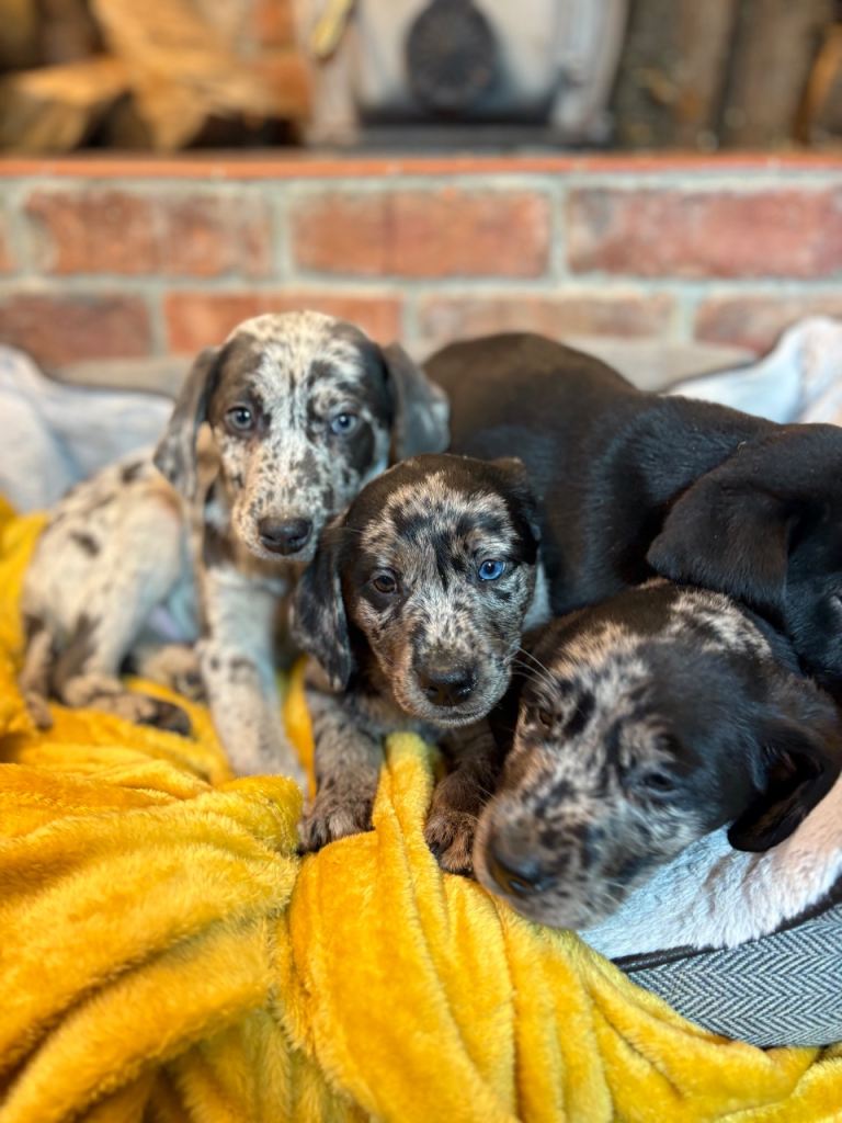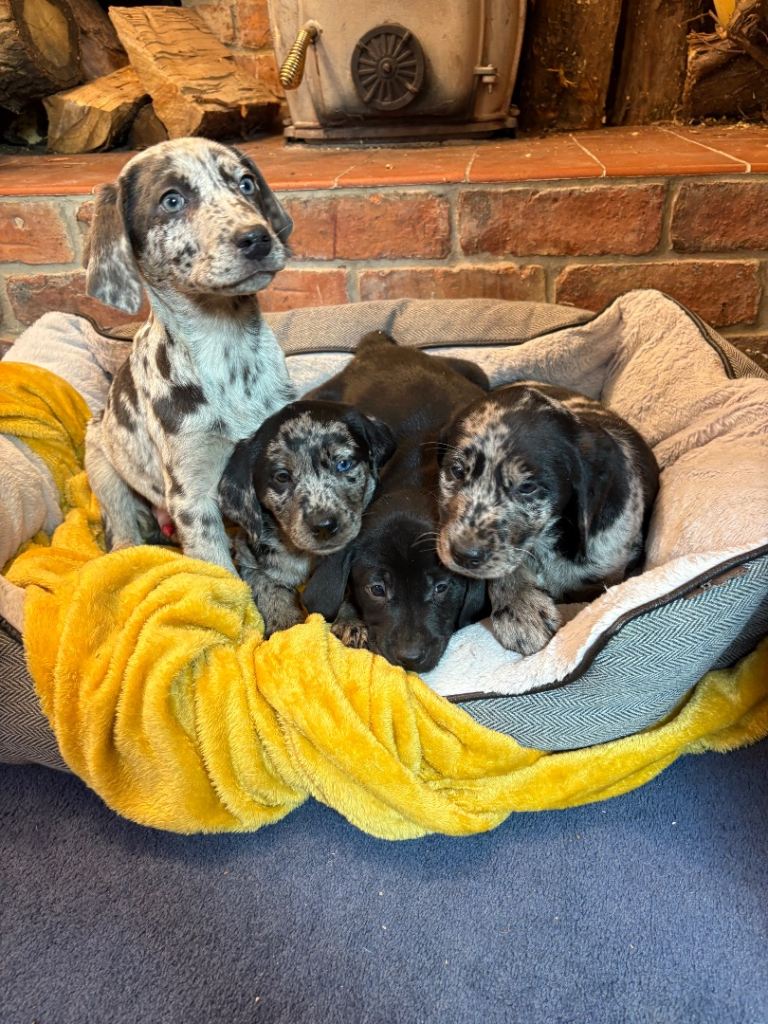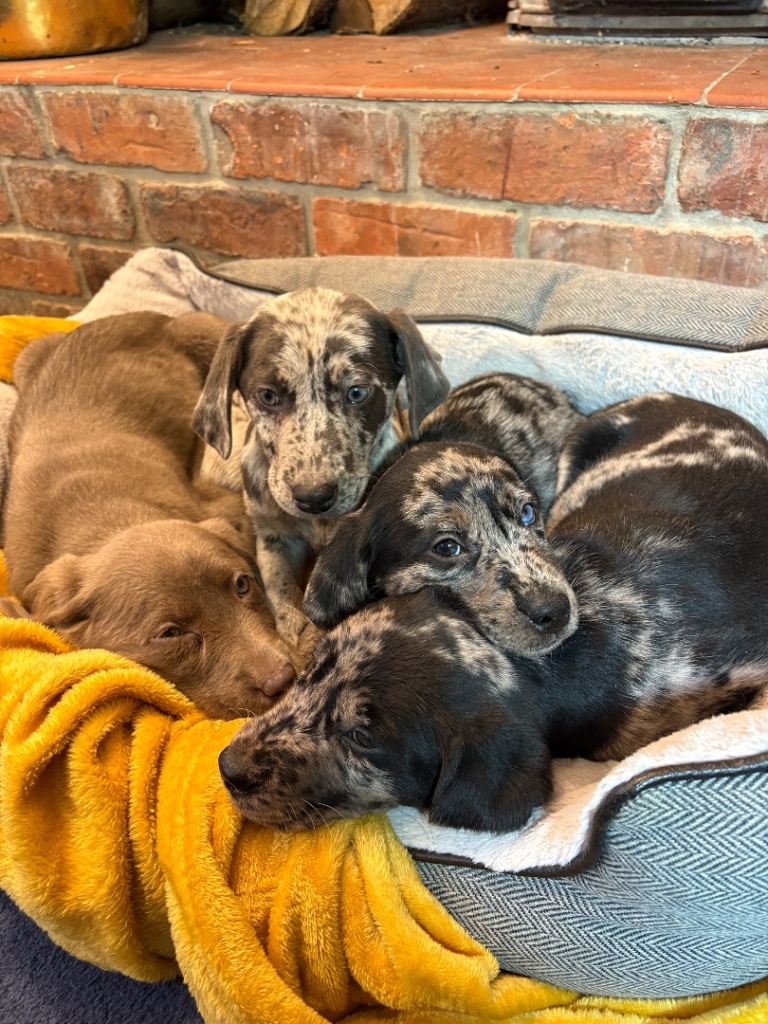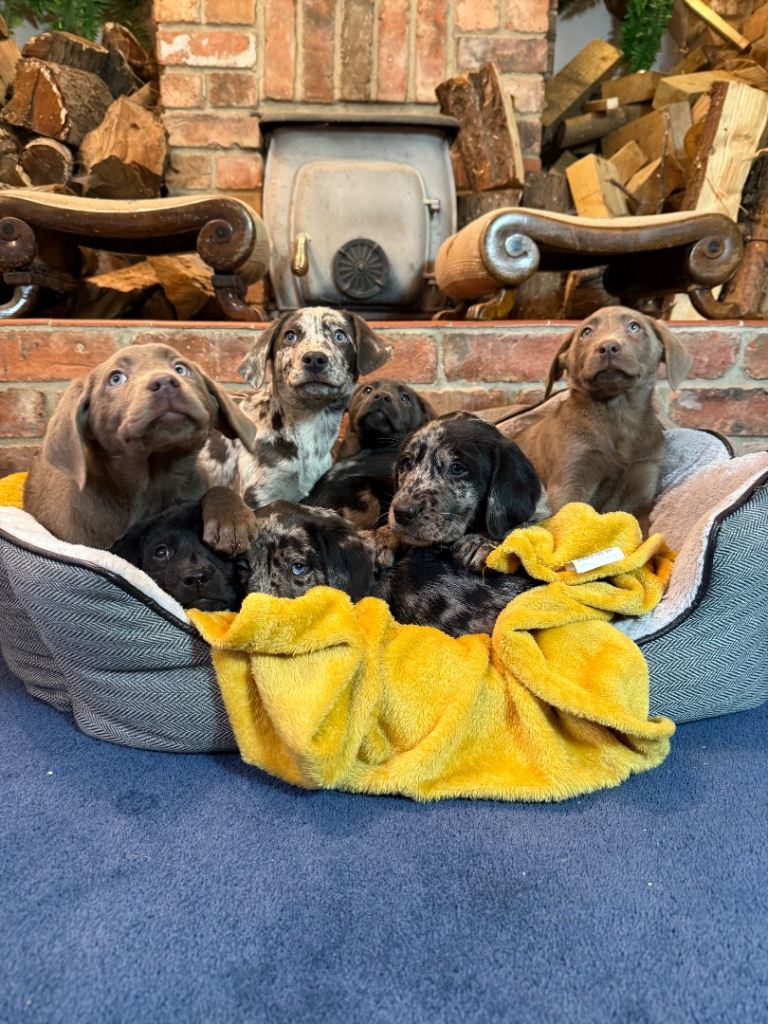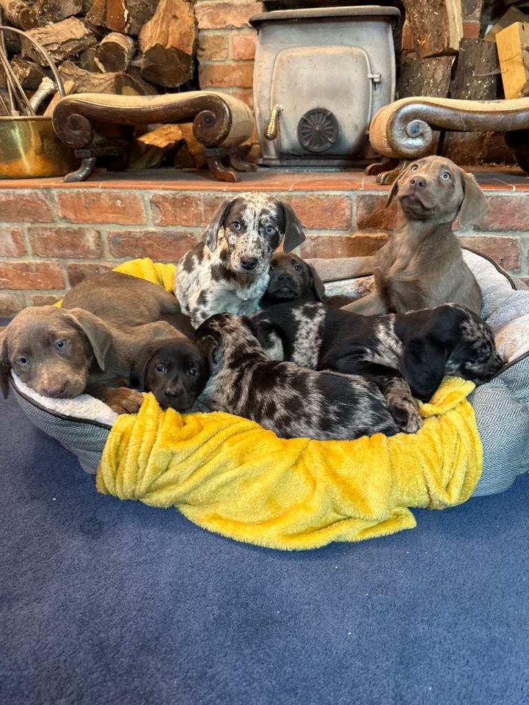 Our lovely Holly’s beautiful “chocolate box” litter of assorted merle, silver, charcoal and black puppies are now eight weeks old and ready for their new forever homes.