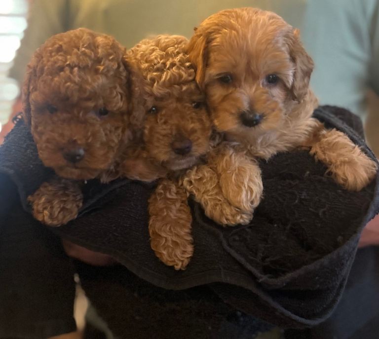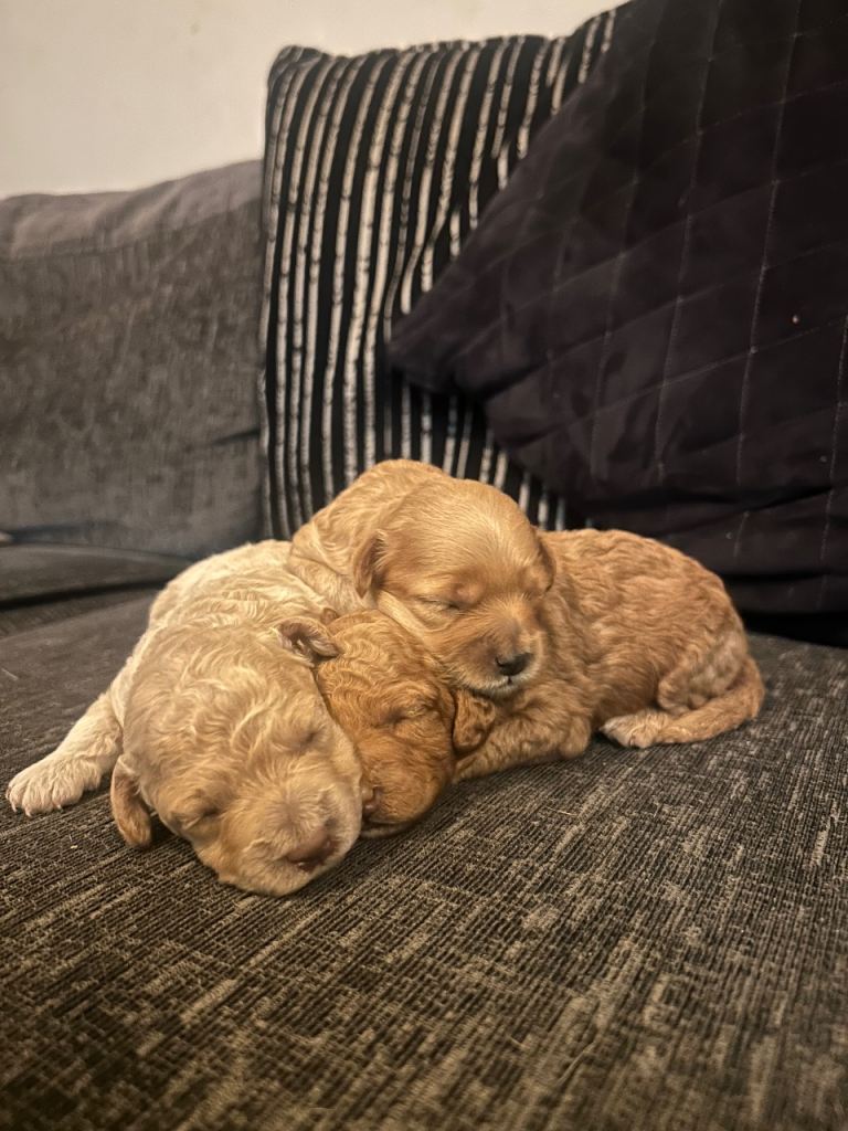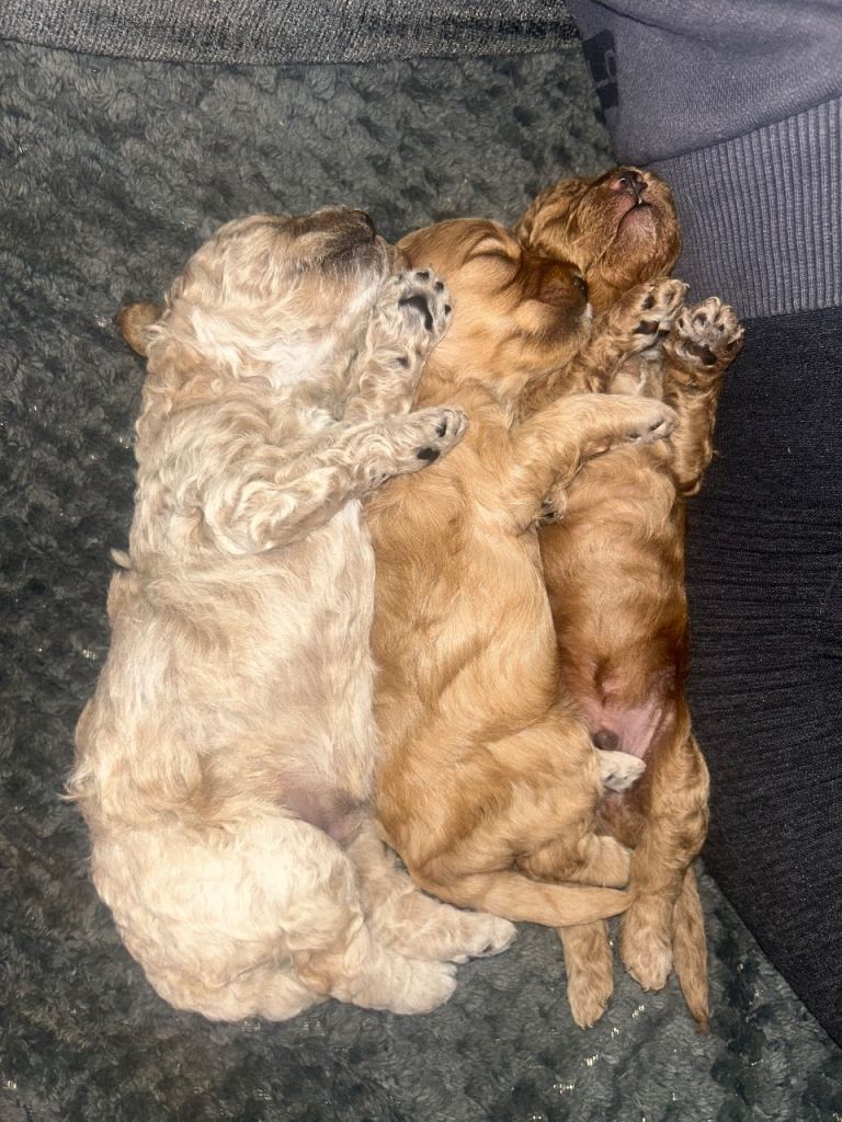 Meet our last remaining little heart-stealer – a gorgeous champagne Cockapoo boy, born on 26/01/2026, and ready to find his forever home. Mum, Rolo, is our much-loved family pet, a beautiful, healthy Cockapoo with extensively health-tested lineage, meaning she is clear of hereditary genetic conditions; she lives happily with our children and other dogs and has been the most loving, attentive mum. Dad is the stunning deep red toy poodle “Mr Spicy Whisky,” a clever, affectionate local stud with a fantastic temperament and health-tested background – even showing off tricks like walking on his back legs! From this wonderful pairing came three stunning puppies, each with unique colouring, and now just this special champagne boy remains. He is being raised in a busy family home, well socialised, and is thriving on a diet of puppy pâté and kibble. He will leave us fully up to date with flea and worm treatments, first vaccination, and microchipped. He’ll be ready to leave from 30th March, and we welcome viewings (including FaceTime for those further away). A £500 non-refundable deposit secures him. We are looking for a genuine, loving lifetime home only – someone ready to give him the same love and care he’s had with us, as he truly deserves nothing less.