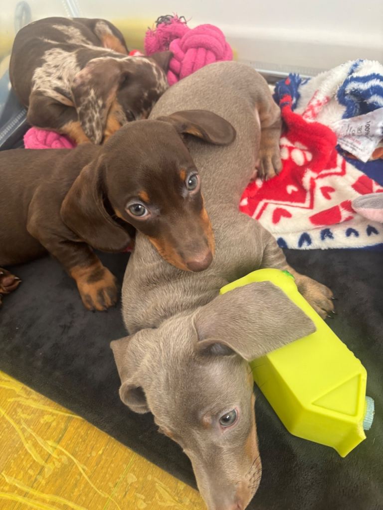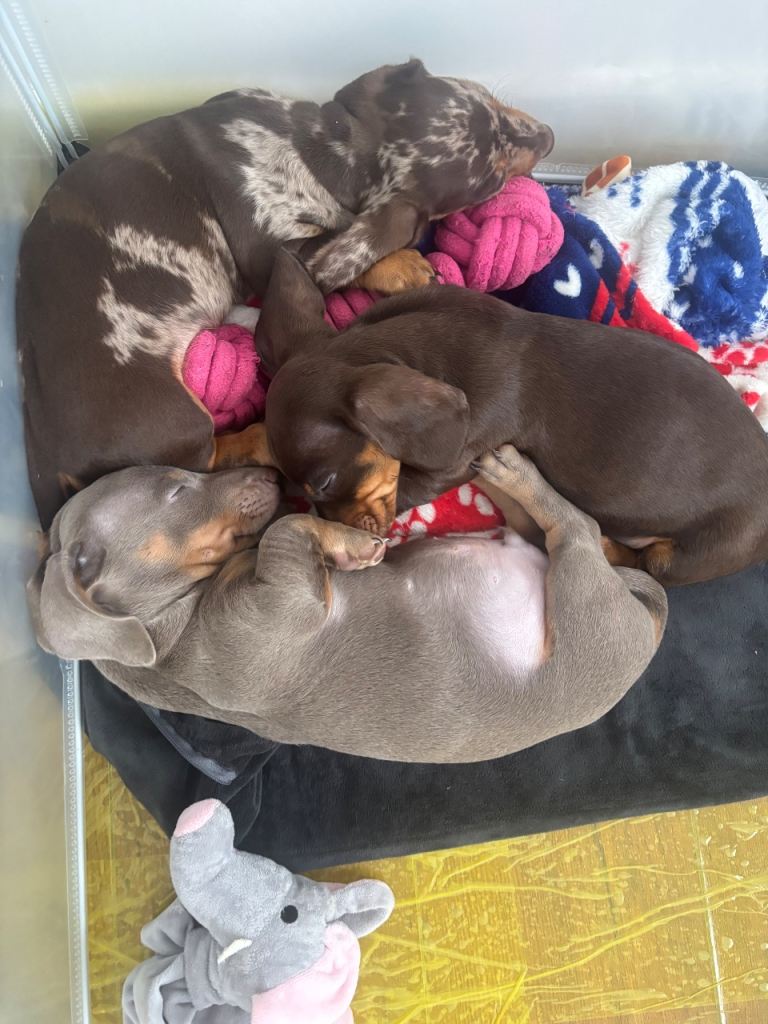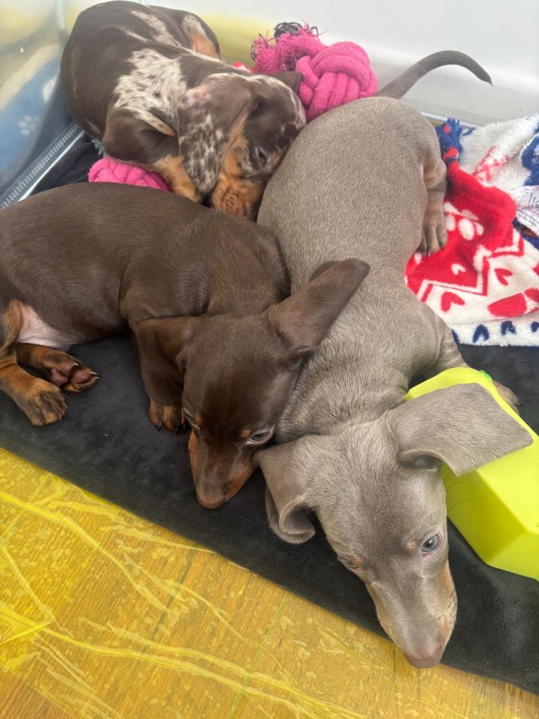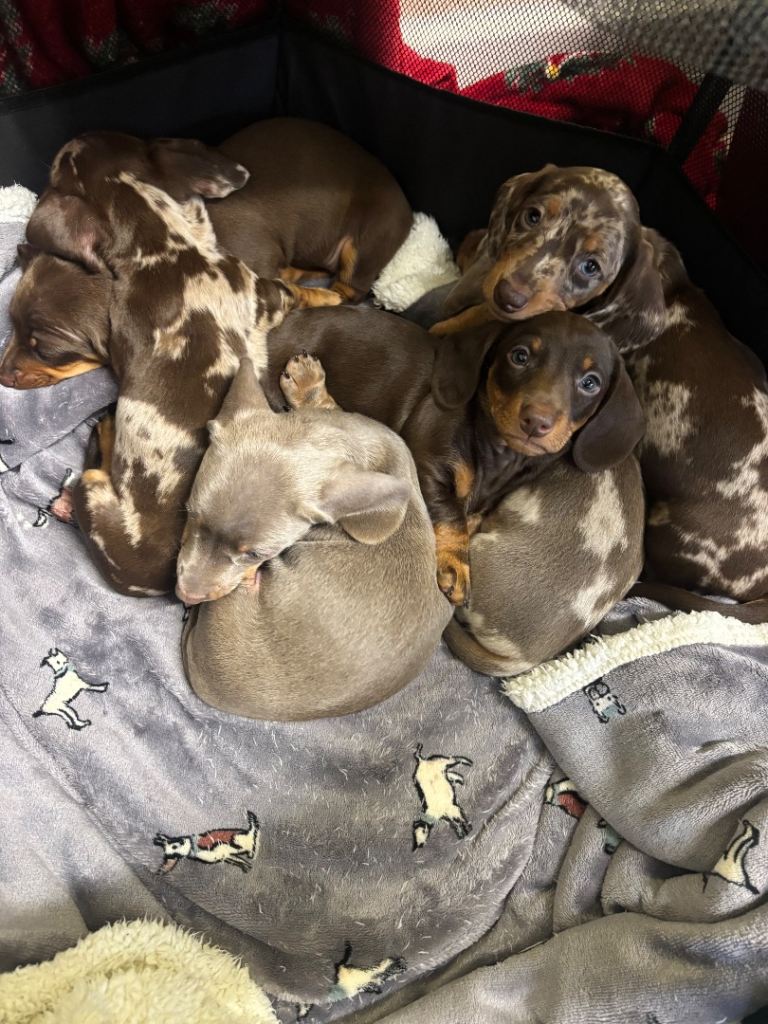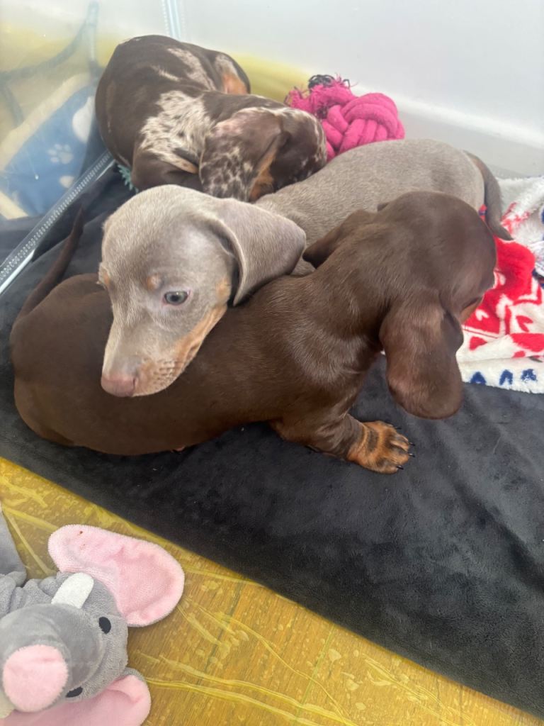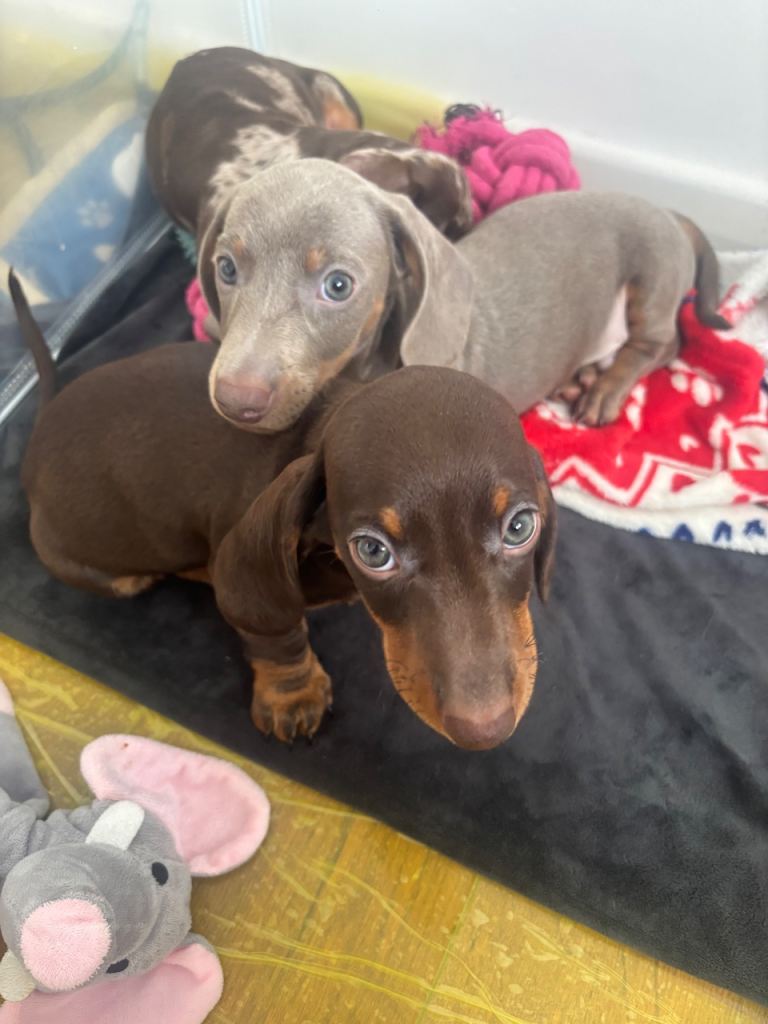 No expense has been spared on raising these pups they are currently weaned on royal canine dachshund puppy wet and dry food kept in warm clean environment puppies have been handled daily and surrounded by children and the usual household sounds.