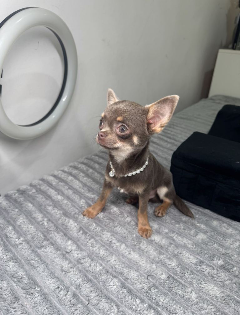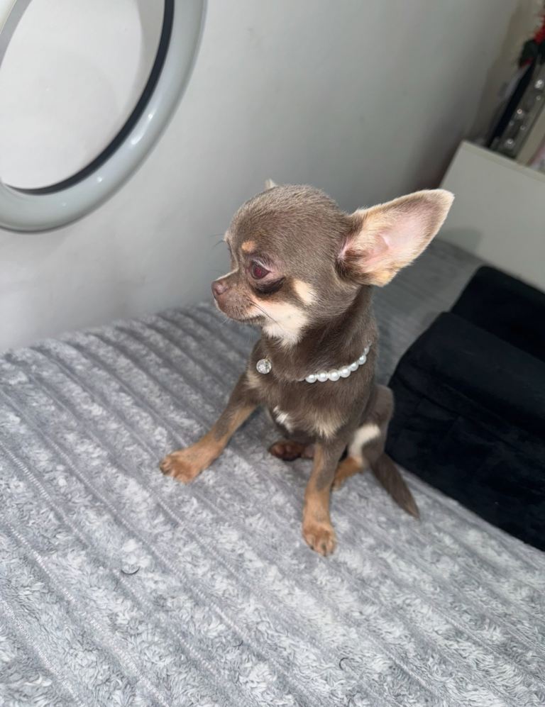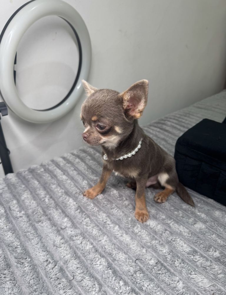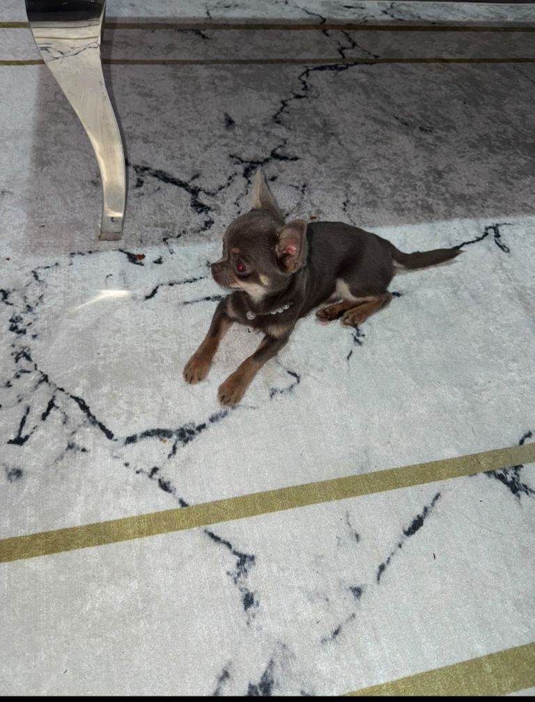 Gorgeous lilac and tan chihuahua puppy ready to leave now.