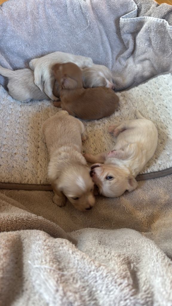 We have been blessed, on Christmas Day, with the most beautiful littler of Doxie pups.
