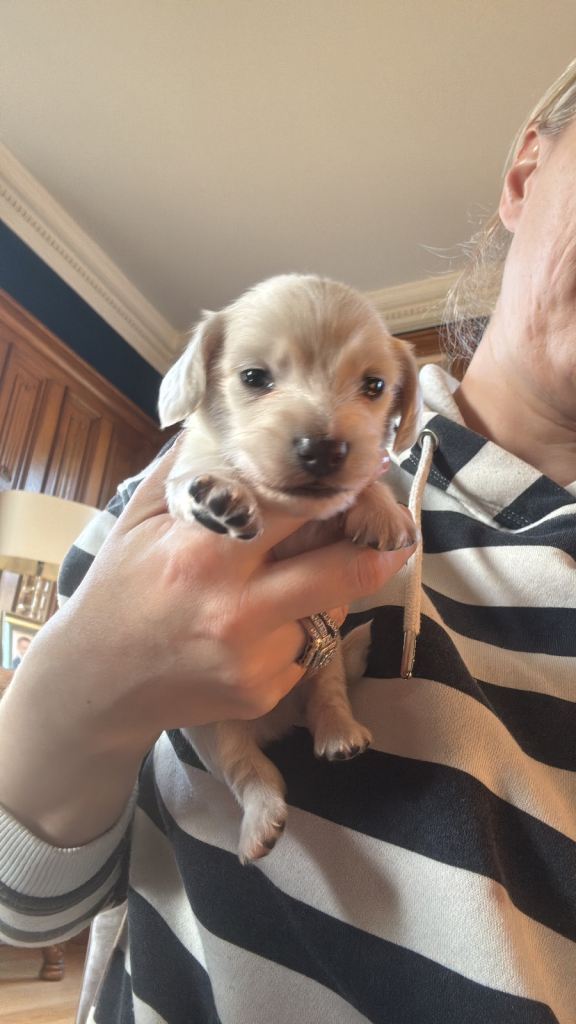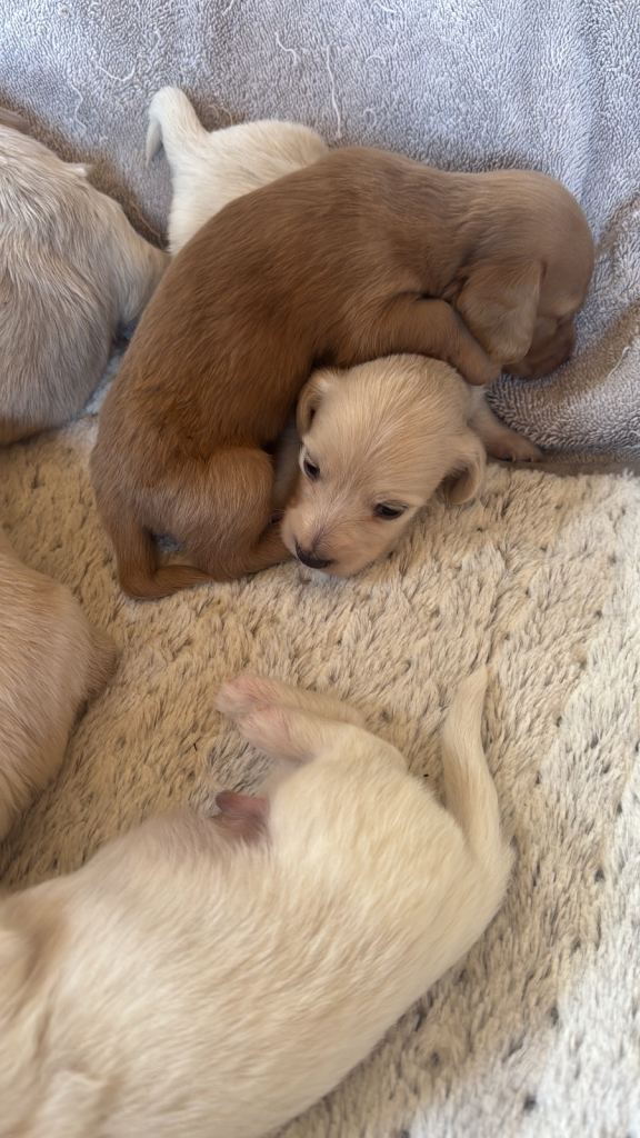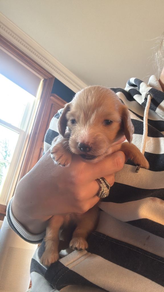 If you ever saw a beautiful little blonde Doxie being walked in castlerock, with another red Doxie….. this is her first litter!