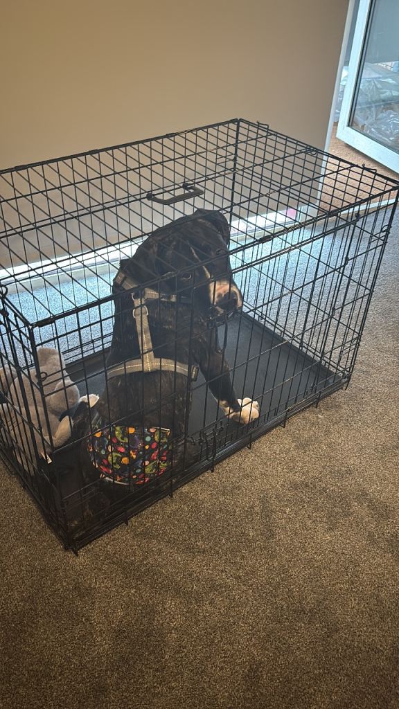 He is 3 months old and had no health issues and he is great with kids and people and he is potty trained and is able to follow basic commands is good on walks and is very friendly as well we are rehoming as we are moving abroad and can’t take him with us.He comes with his cage and a bed that is Brand new aswell as and his mattress for in the cage and toys and leashes and a large bag of kibble.Happy to negotiate on price as we are leaving soon. And can also deliver if close by Thanks Please message for any info
