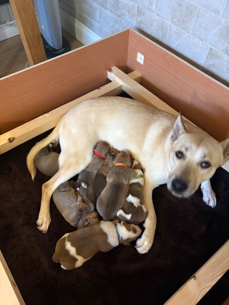 Our beautiful girl Sushi and my daughters wonderful boy Teddy have welcomed stunning 3 puppies ,born November 4th-3 boys. All puppies are thriving, happy. Sushi is proving to be an exceptional and devoted mummy.