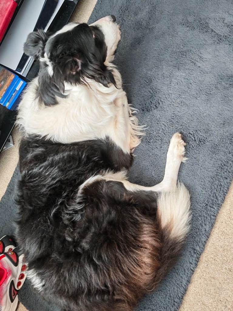 Bear, was bought April 2020 and is a pure bred Border Collie, he was bought from a farm and his mum was a working dog. Bear however it’s a loved pampered pet. Lol. He loves to have cuddles, would get up into your arms if you let him and gives kisses.