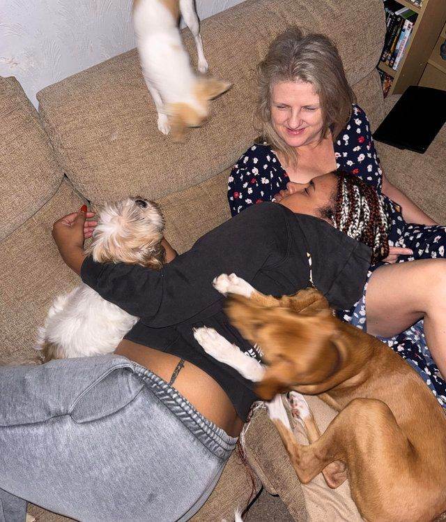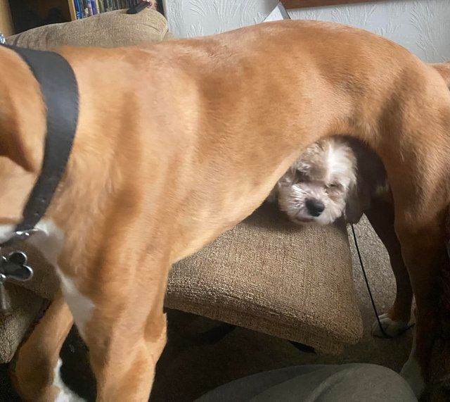 As you can see from the photos, he is very much a family dog. Unfortunately, the other dogs in our household do not cope well with him. Jessi, our 16-year-old Shih Tzu has doggy dementia and has lost the ability to read cues, making her very intolerant and reactive.