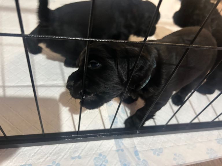 Gorgeous pup born Christmas Day looking for their forever homes! Ready to view black male with white dot on chest, well socialised within family home that has children all pups are thriving and have fantastic personalities