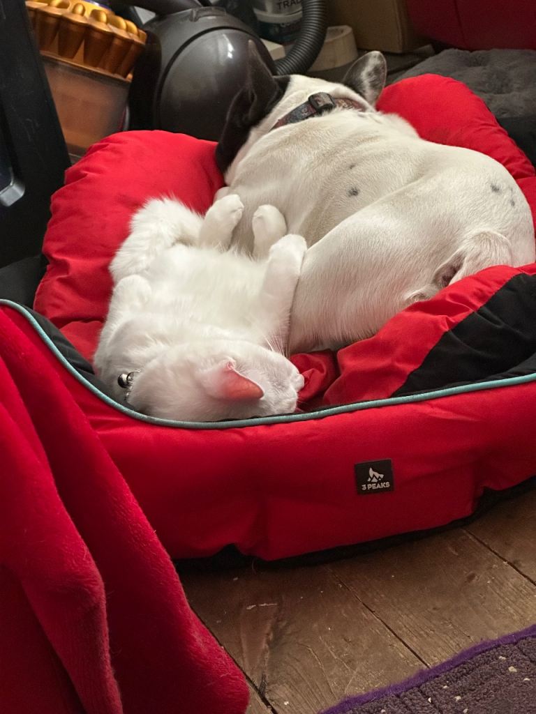 I have a 3 year old male French bulldog looking for a friendly loving home. He is good around people children and other pets.