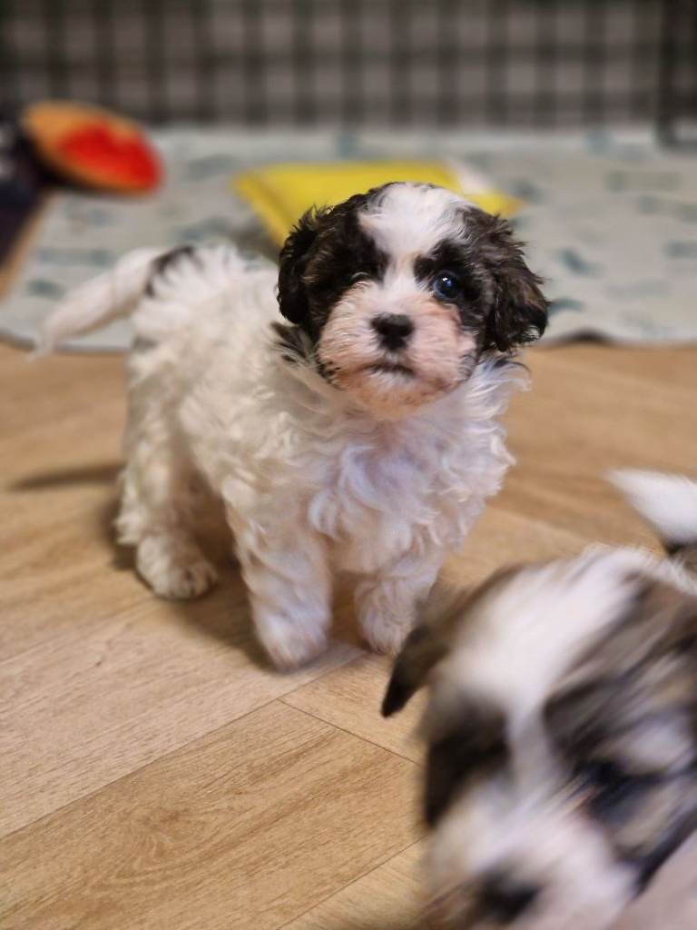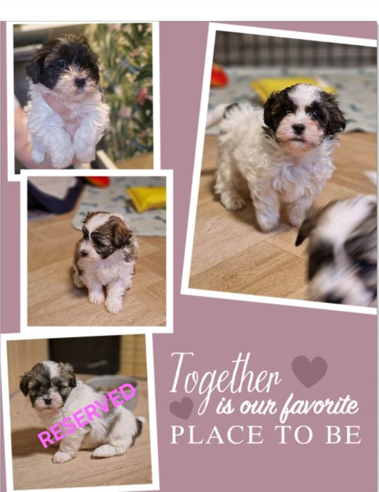 These pups are a mix of Maltese, Shih Tzu, and Poodle – making them smart, friendly, and non-shedding. They have been raised in a loving home environment.