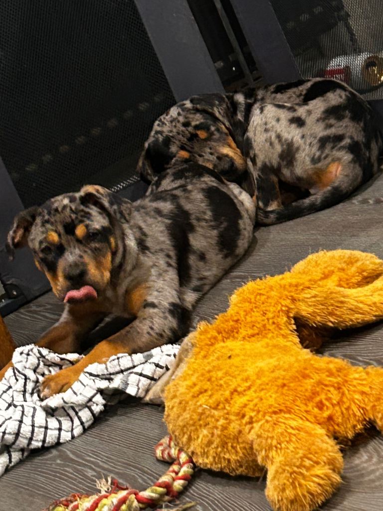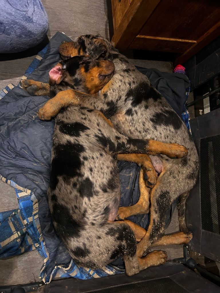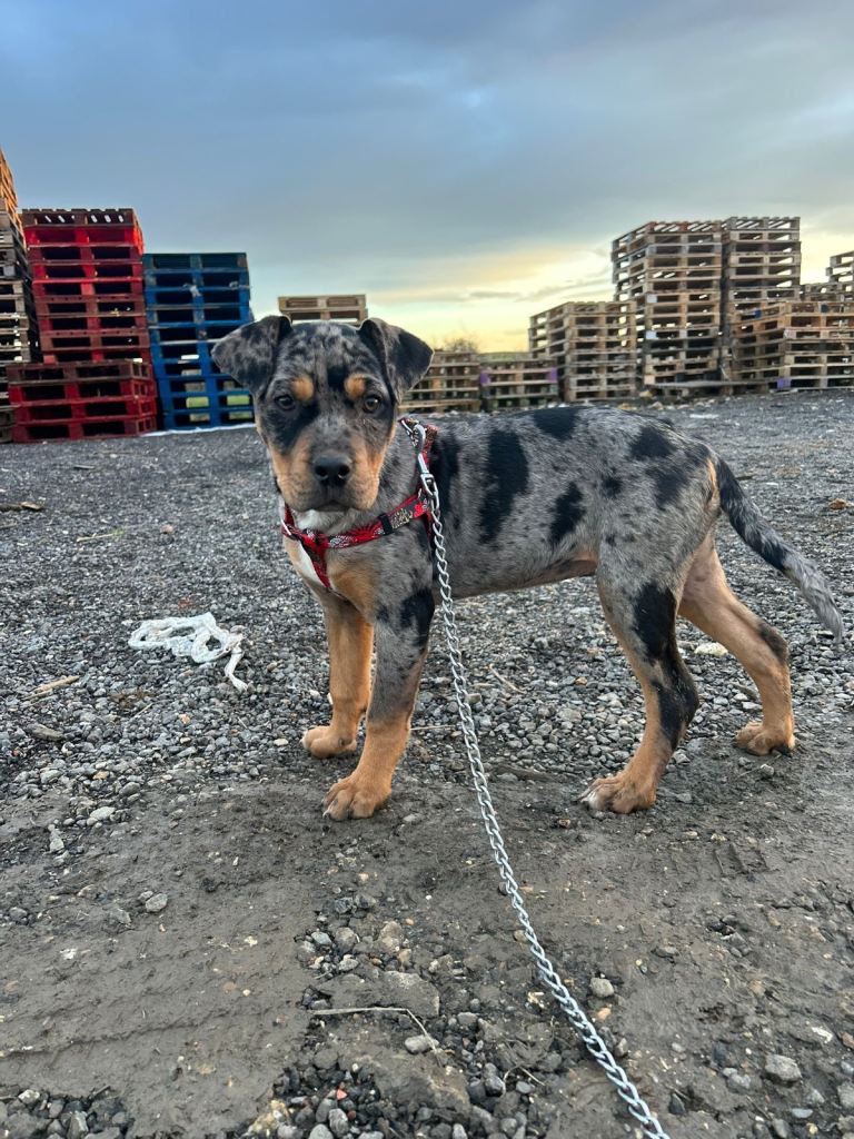 2 female Rottweiler x catahoula leopard dogs. Beautiful pups amazing temperament and very intelligent dogs. Energetic and great working dogs but also very affectionate and perfect a family pet. Both have slightly different features one has more of a catahoula face and the other more of a Rottweiler shape face. 16 weeks old. £1250 each