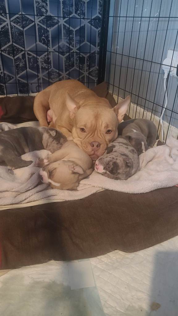 4 male micro bully pups looking for there forever home. They're playful but love there cuddles too. Ready to leave on the 29th Dec.