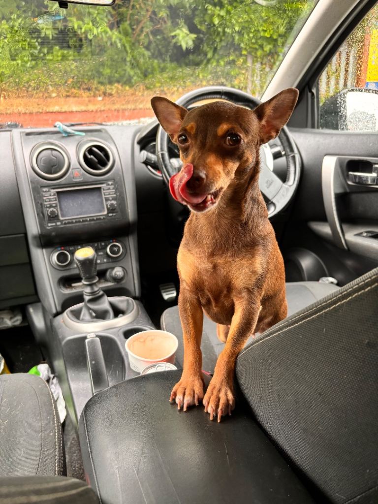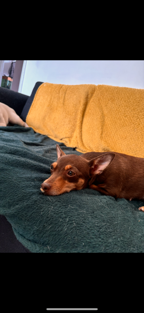 This is Salsa” she is a five-year-old Min Pin . She’s such a beautiful dog Who loves being held and mothered. Shes fine with cats and dogs but does shrink around new dogs so slow Introductions needed. I would prefer Salsa to be an only dog in the household so she can get all the attention. She’s not fussy with food and is create trained. Tell me about the potential home you could offer her and we can see if it’s a match ❤️ very sad rehome so I will be asking lots of questions and home checks are a must. Manchester area.