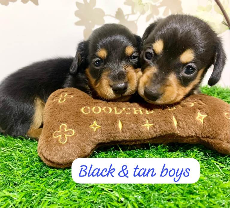 We are very pleased to say our amazing girl Peggy self whelped and reared 5 amazing babies ,three little ladies and 2 handsome boys, Peggy is a very small Black and Tan , dad is was a Kaneishan size cream and is our own stud dog together they produced a very special litter, these puppies will come vaccinated, microchipped, kc registered, flead and wormed and very well socialised, they have started the weaning process and are currently eating 3 meals a day and doing fantastic at puppy pad training , these babies will be ready to leave 8 th of march but we are taking reservations now please note only the very best homes for these babies ,please don't hesitate to contact for any more information