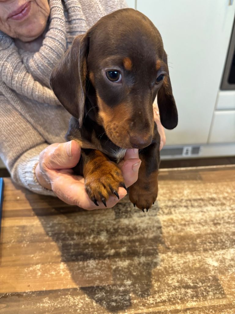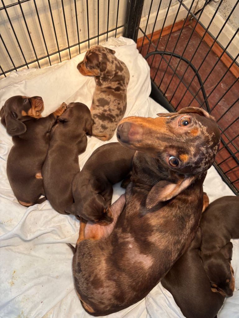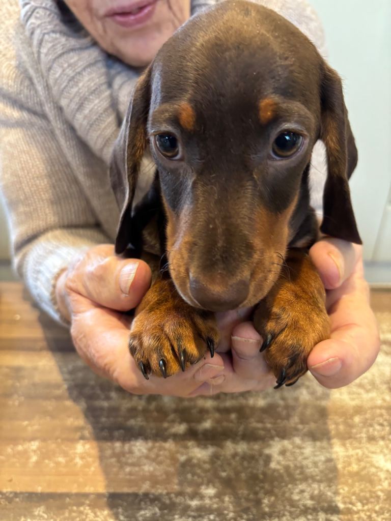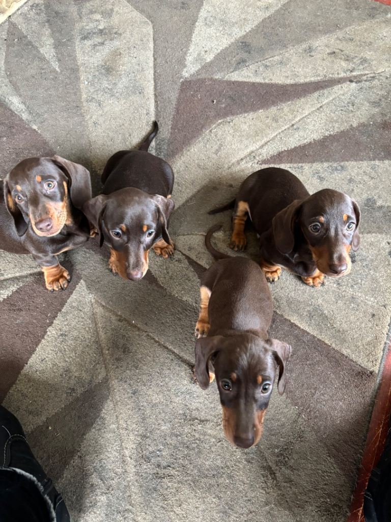 Beautiful mini smooth chocolate and tan dachshunds 4 boys 12 weeks old fully vaccinated de flead chipped and wormed PRA clear brought up in home environment