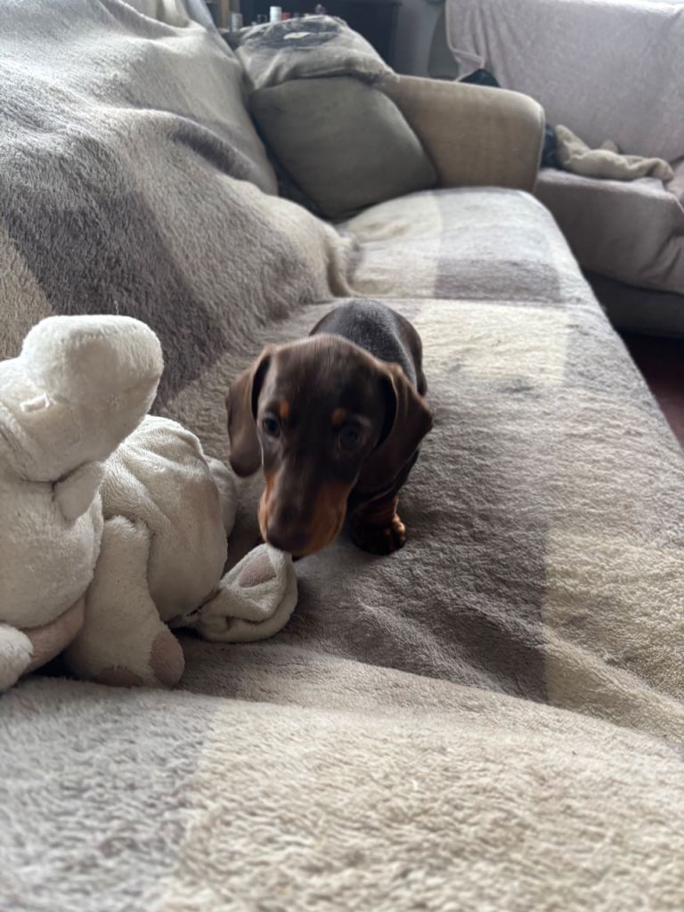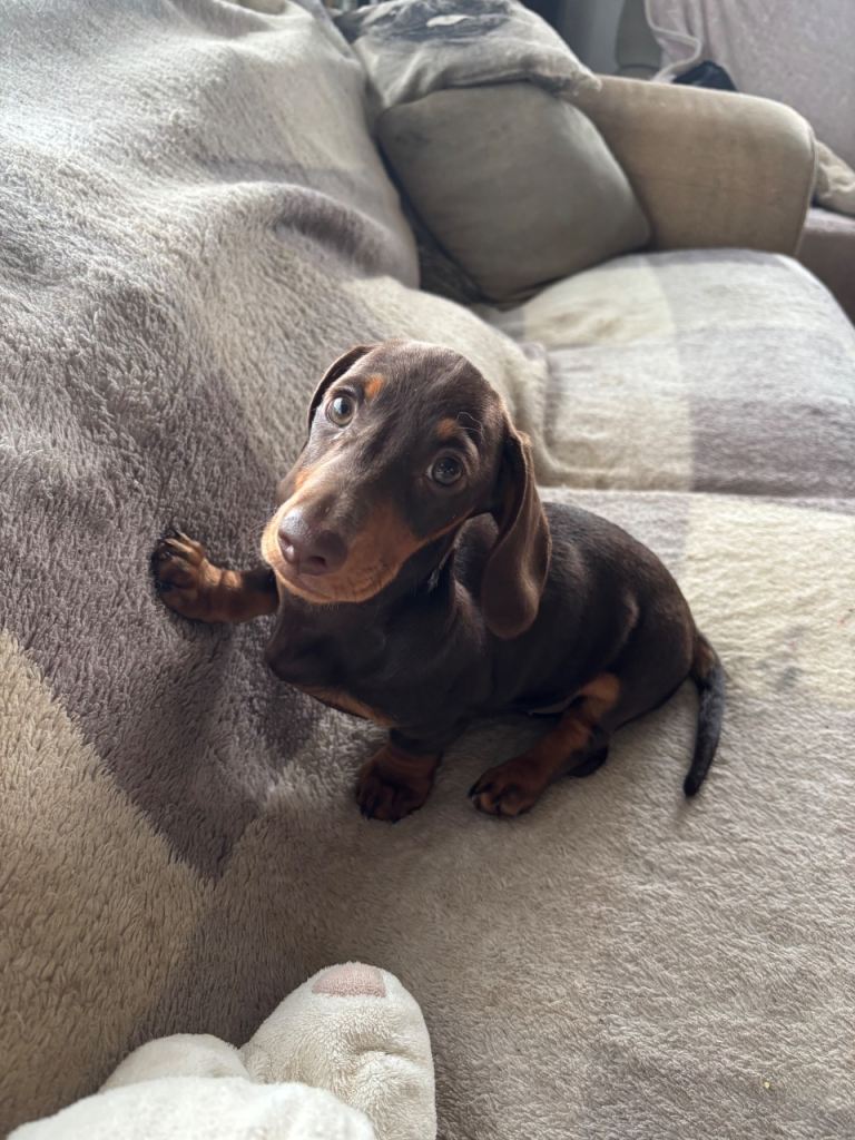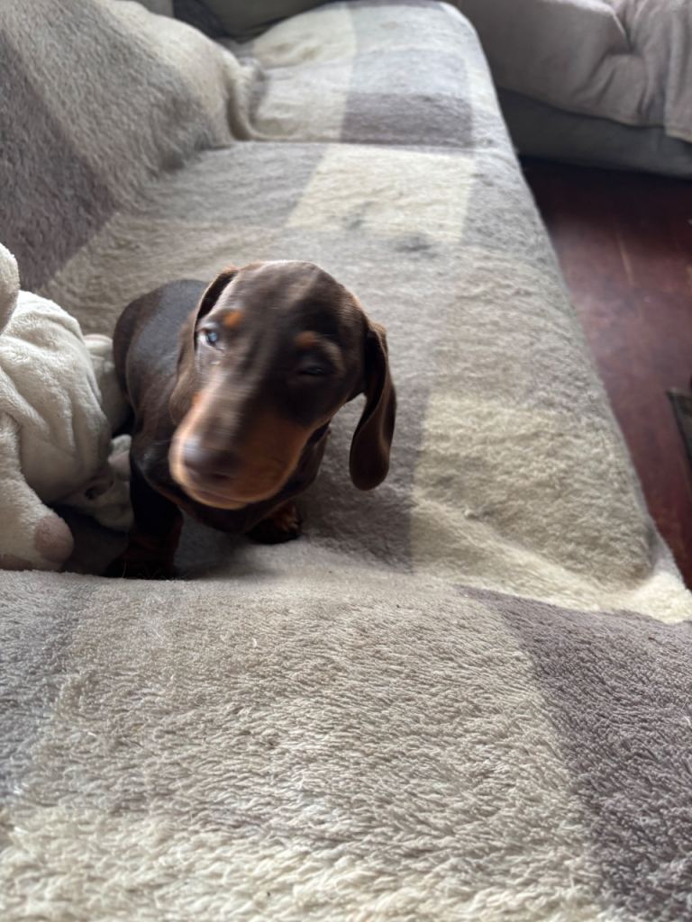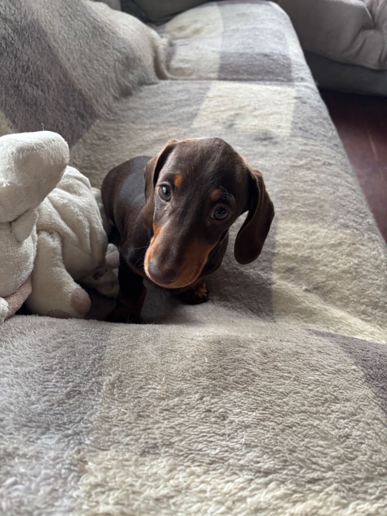Beautiful mini smooth chocolate and tan dachshunds 4 boys 12 weeks old fully vaccinated de flead chipped and wormed PRA clear brought up in home environment