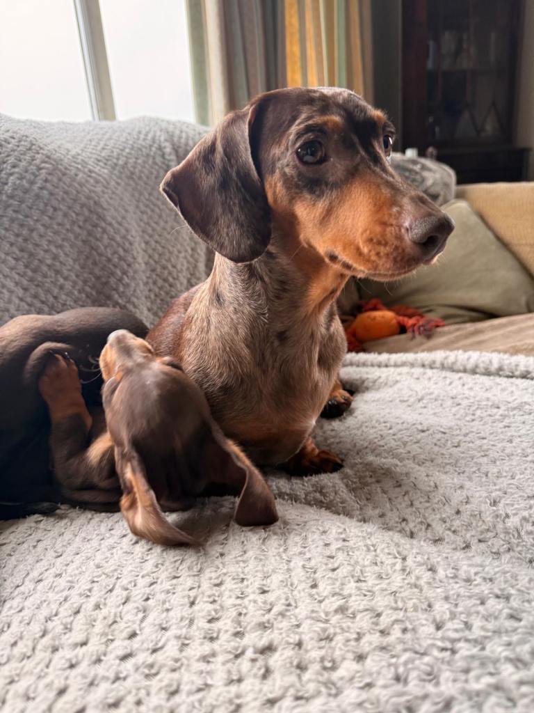 Mini chocolate and tan dachshunds