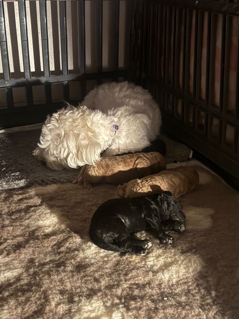 Our beautiful little Pearl is due her second litter week of 23 March. Mum is a miniature cockapoo and dad is a standard sized cockapoo.