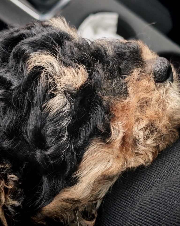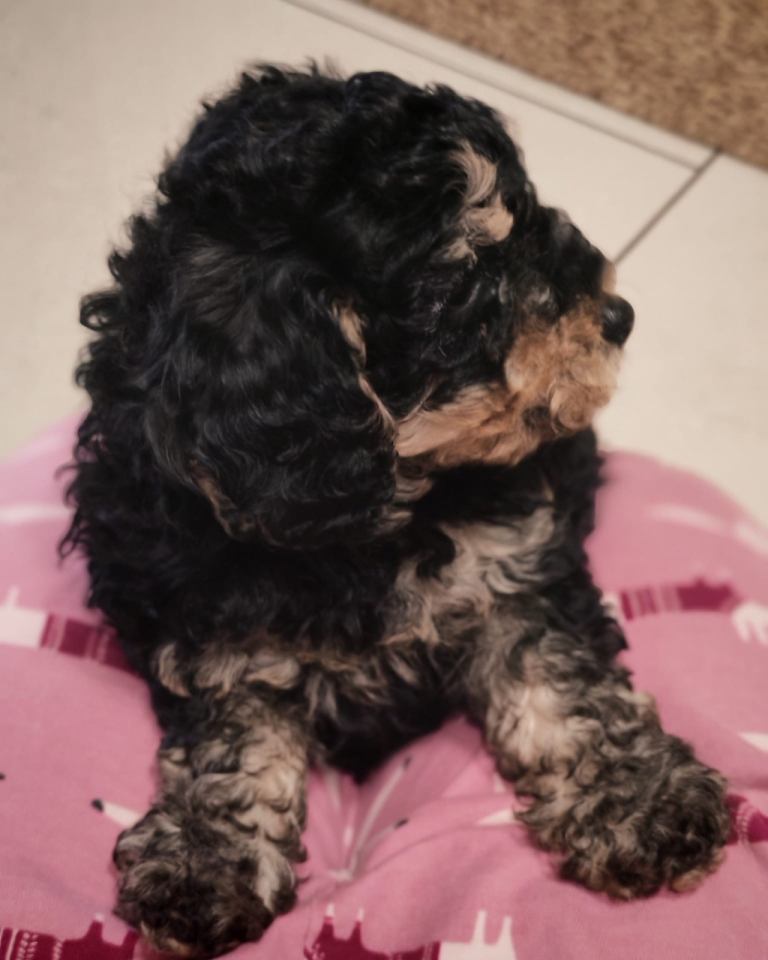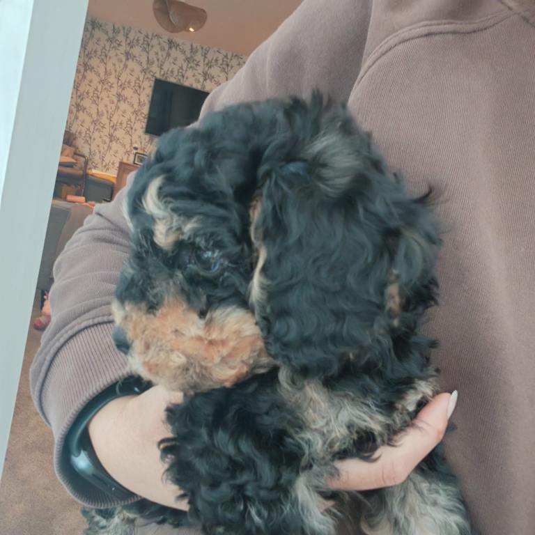 Here I have my beautiful miniature cockapoo puppy. He is ready to leave.
