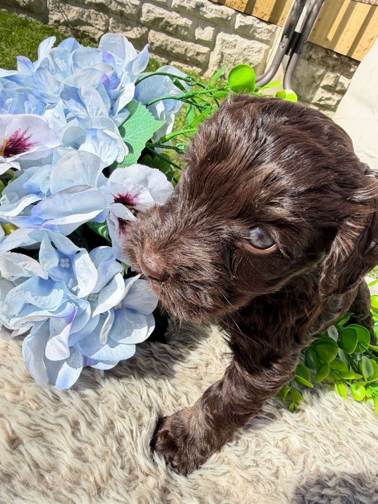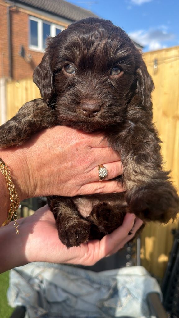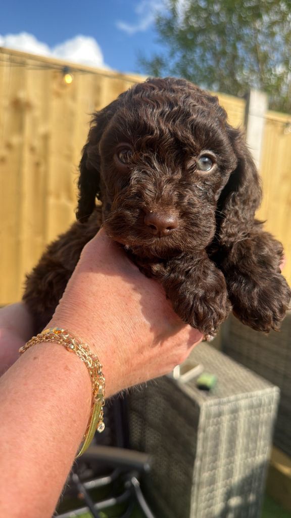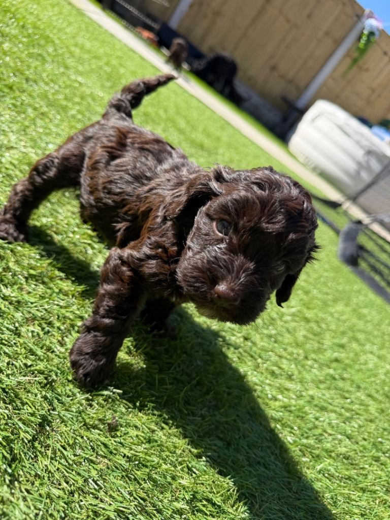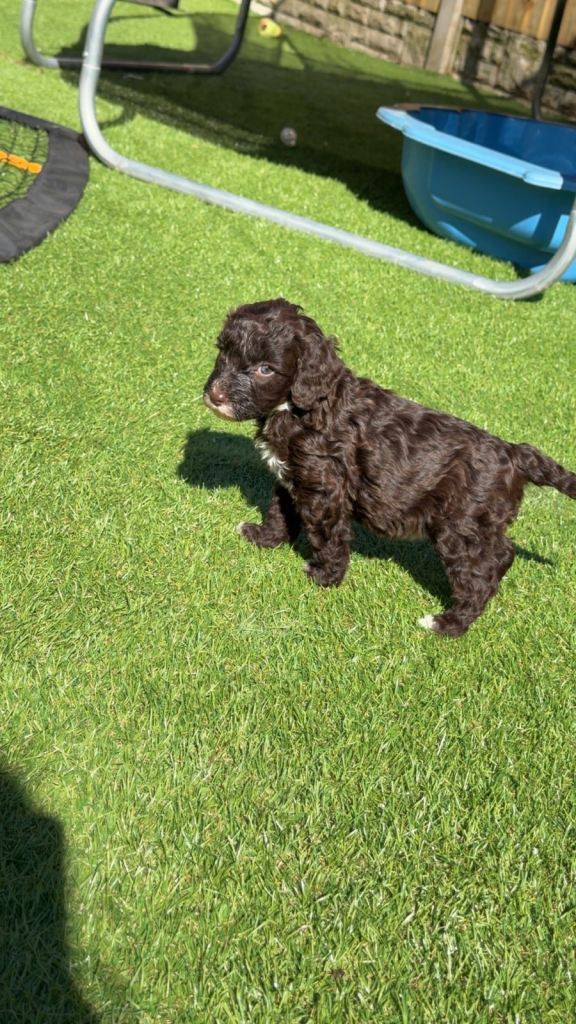 Our beautiful litter of miniature Cockapoo puppies are eagerly searching for their forever homes. We have eight adorable puppies in total – five girls and three boys – all bursting with personality, playful and incredibly affectionate. Both Mum and Dad are Cockapoos, and they both possess amazing gentle and friendly temperaments, which the puppies are already demonstrating. Raised in our family home, they’re well-socialised, accustomed to everyday household noises and handled daily. These puppies will make fantastic family pets and loving companions.