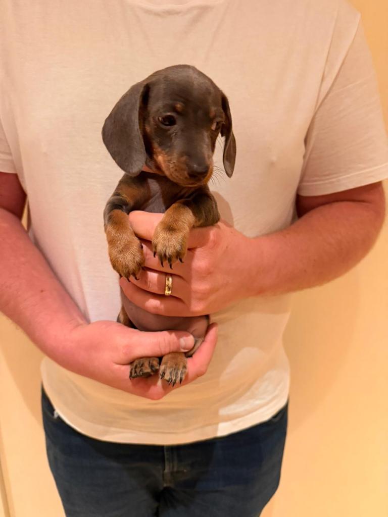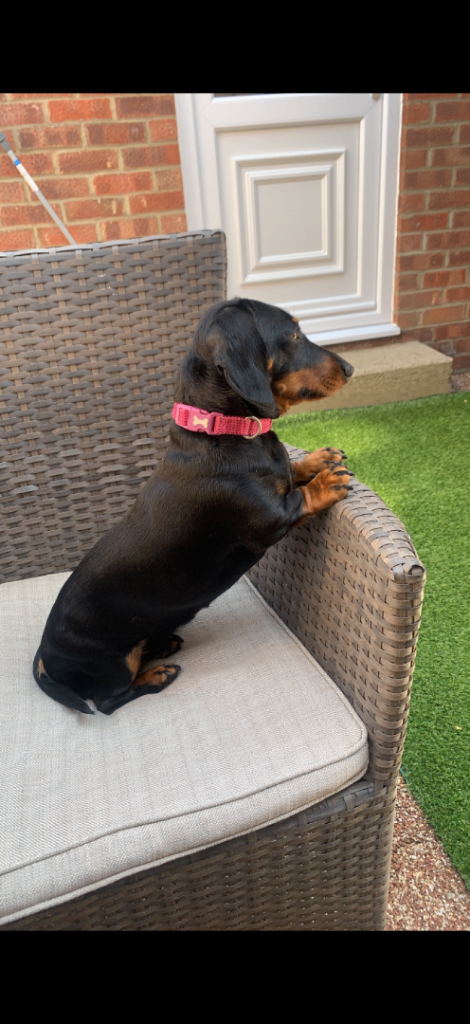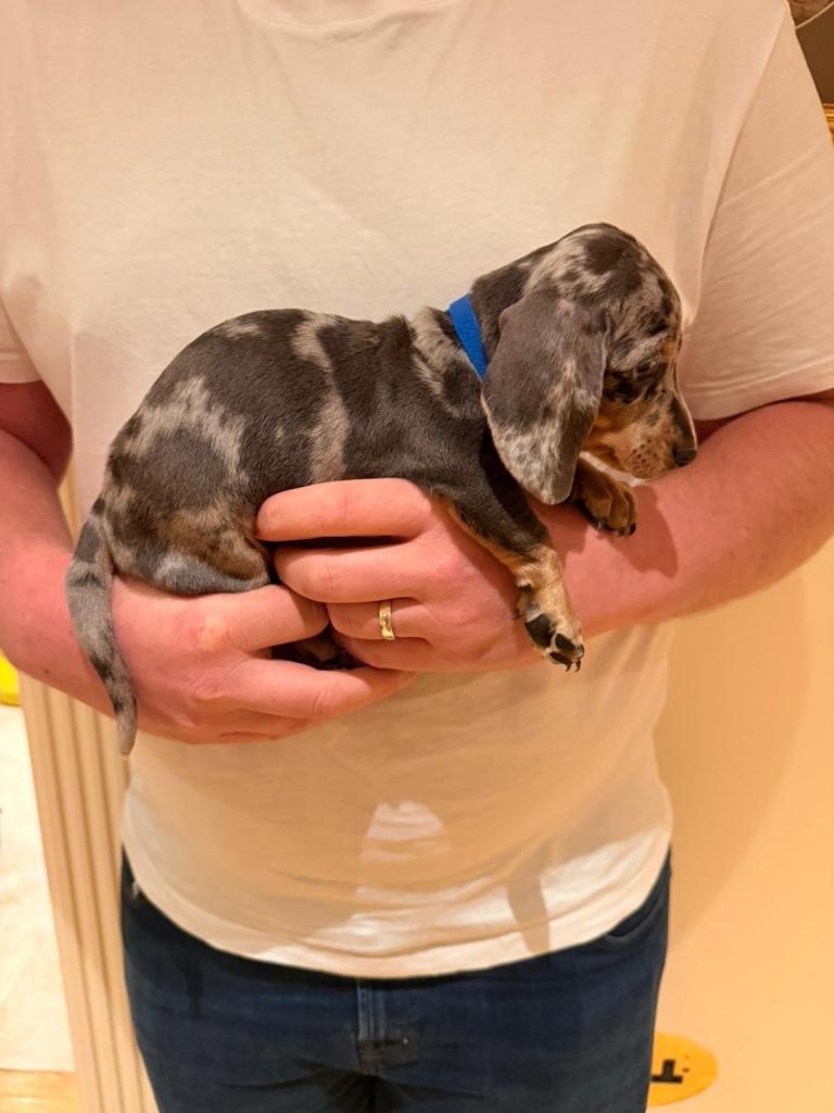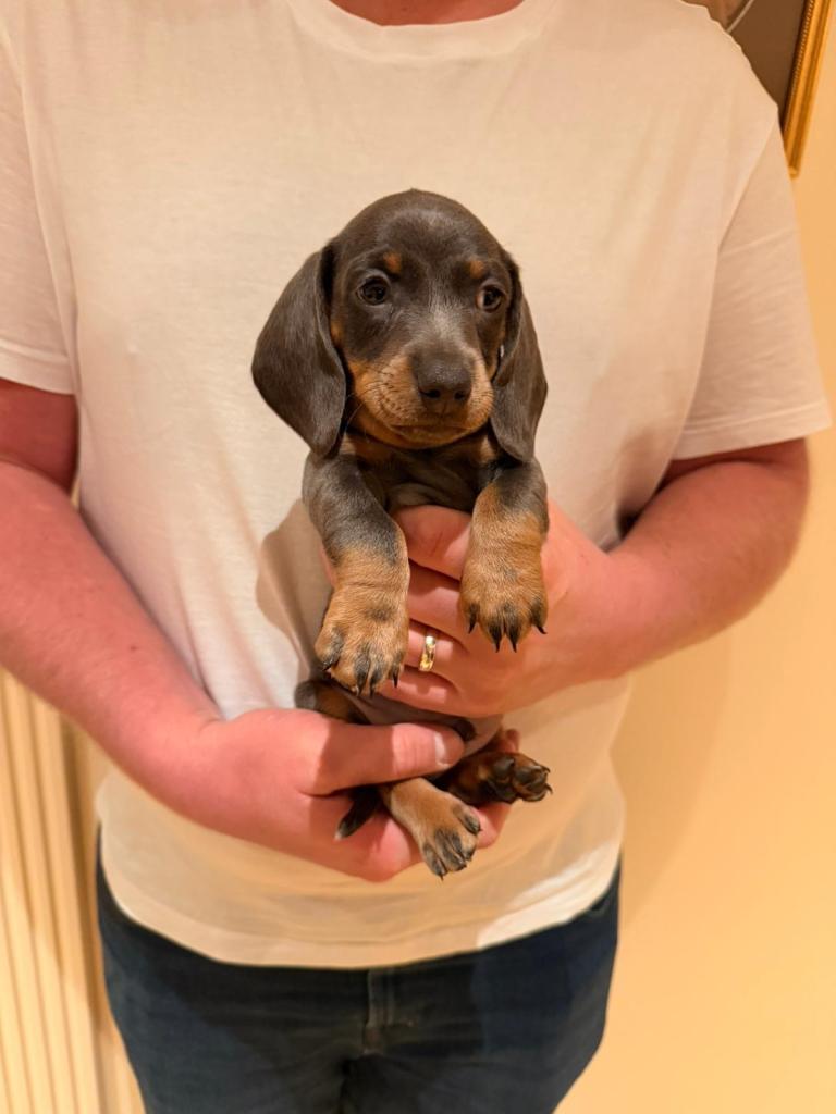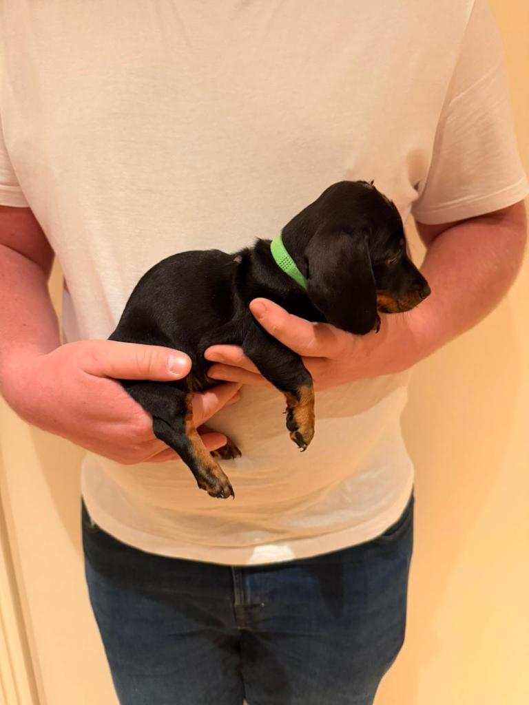 Dad is a handsome KC registered miniature dachshund typical of his breed in size and stature with a friendly and calm temperament.