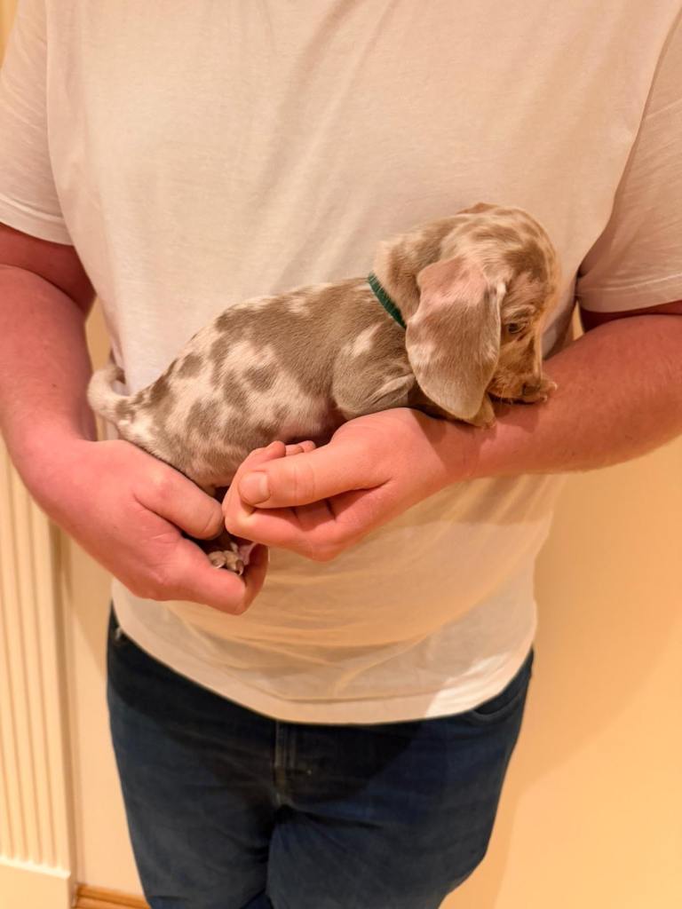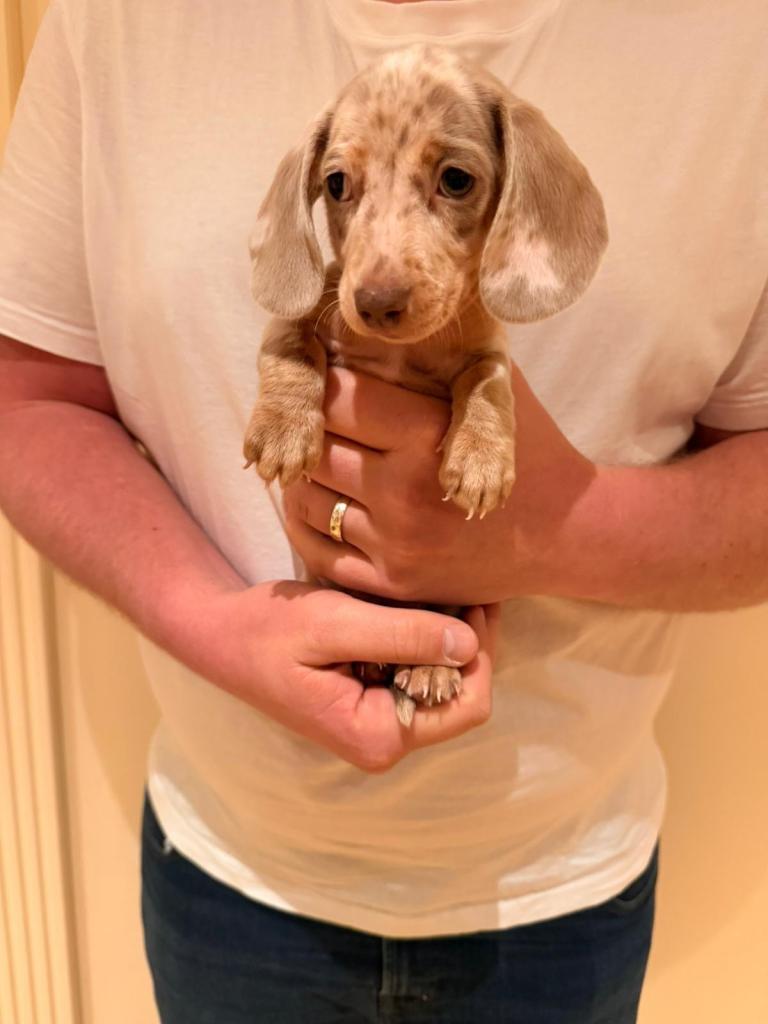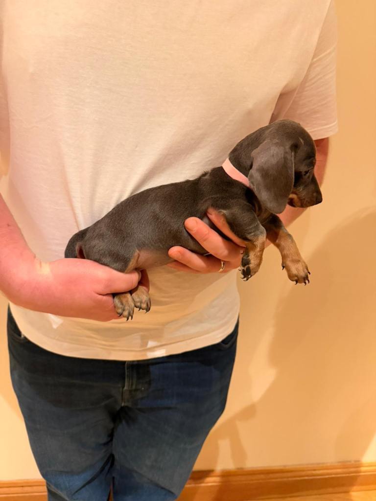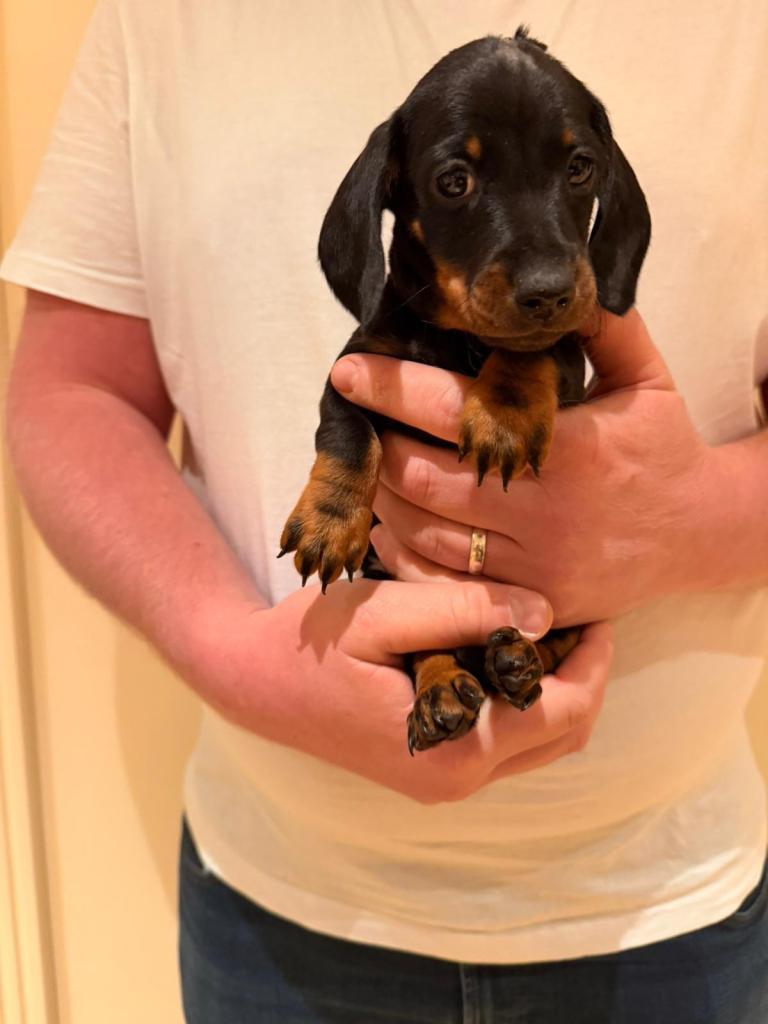 Dad is a handsome KC registered miniature dachshund typical of his breed in size and stature with a friendly and calm temperament.