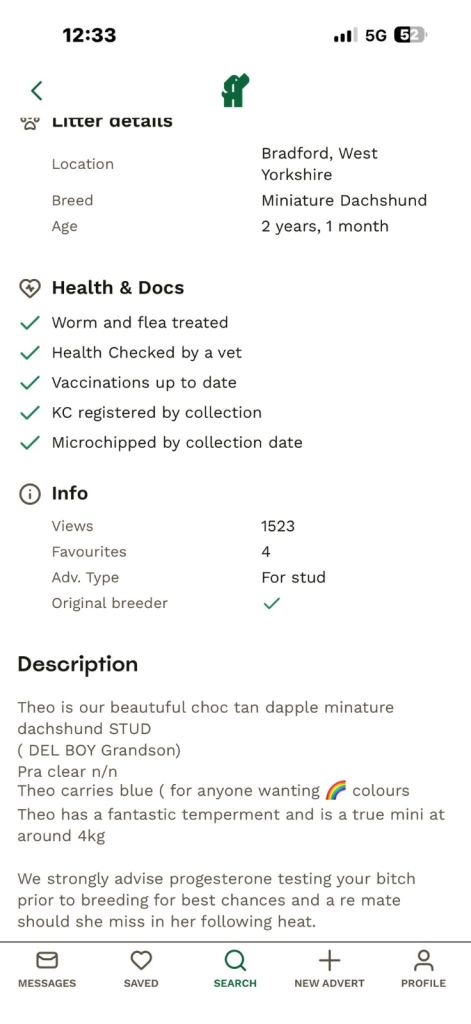 Dad is a local stud. weighing only 4kg so very small. He’s a very kind and gentle natured boy, who loves to lounge around on the sofa most of the day. He's great with children and other dogs too. Dad is kennel club registered however Mum is not kennel club registered therefore puppies will not be Kennel club registered.
