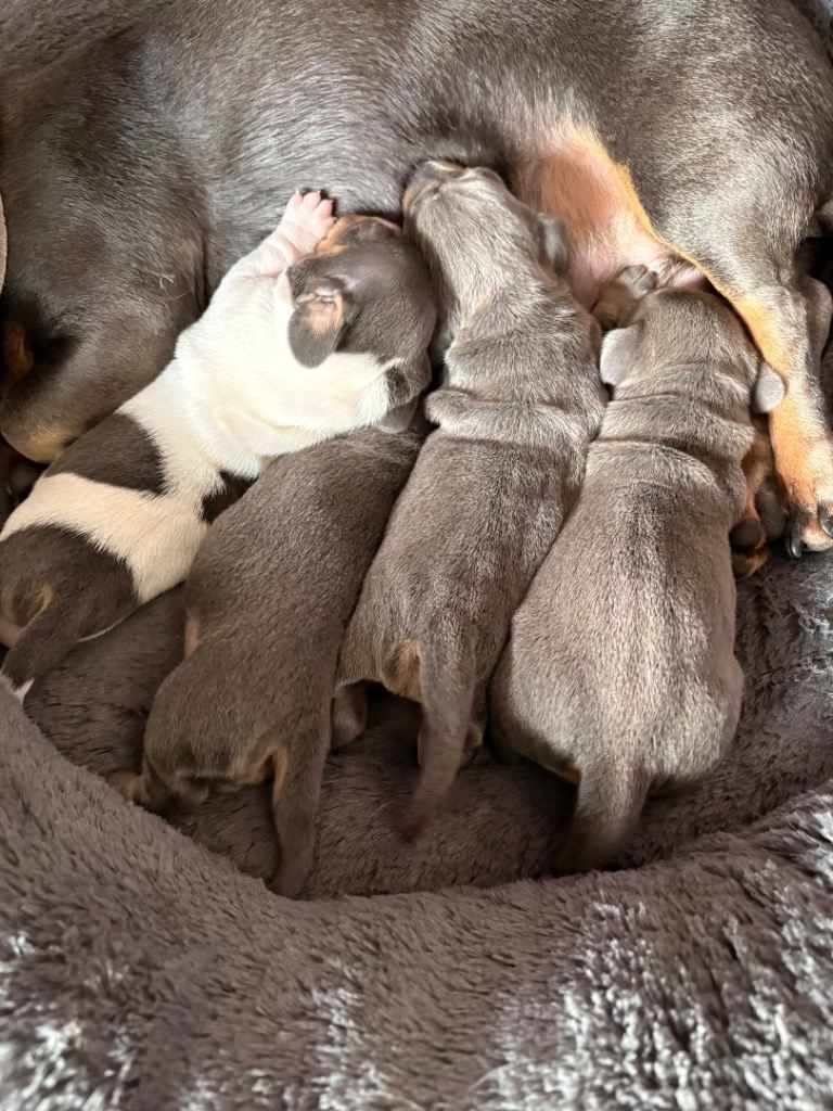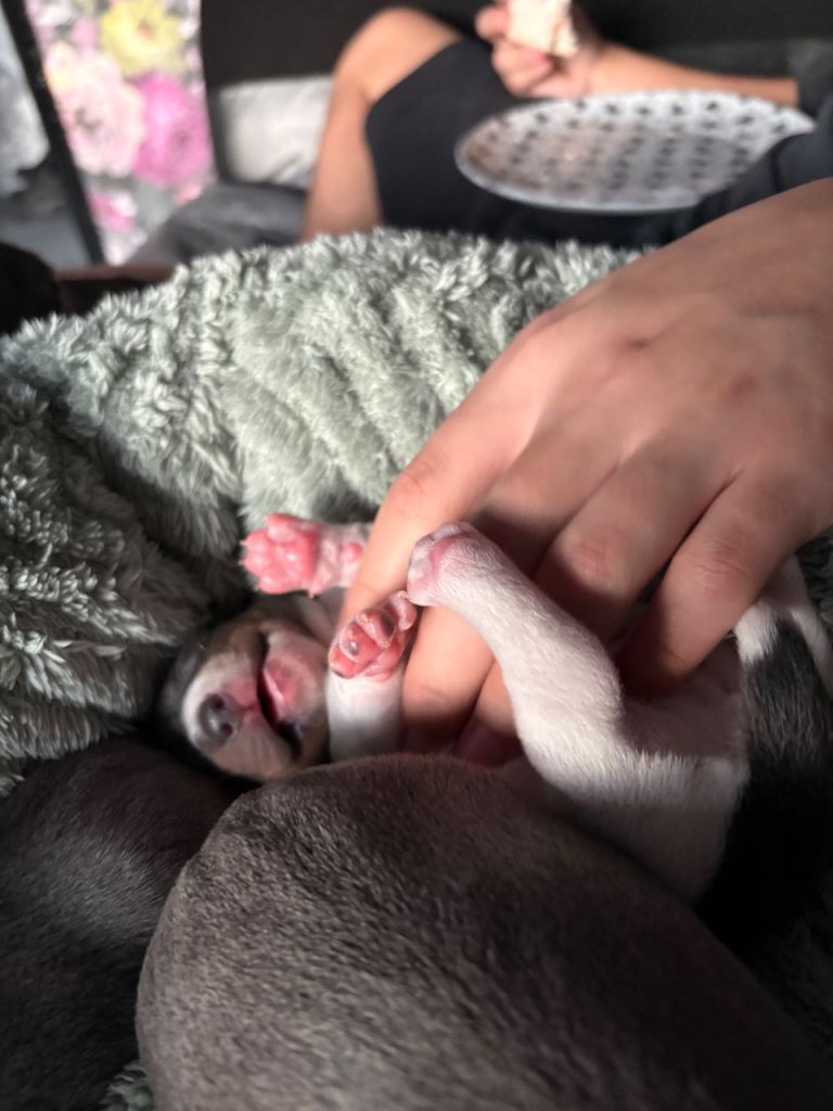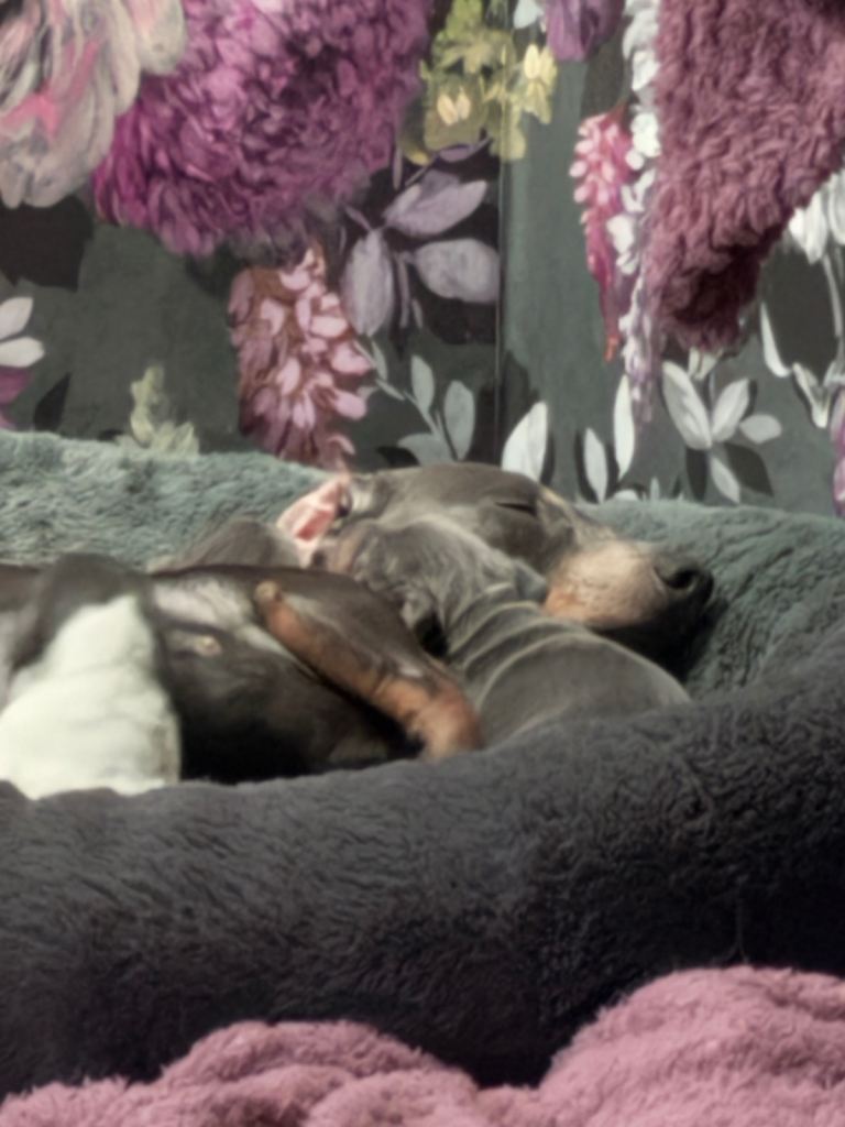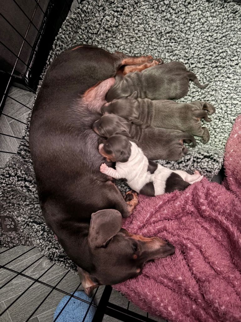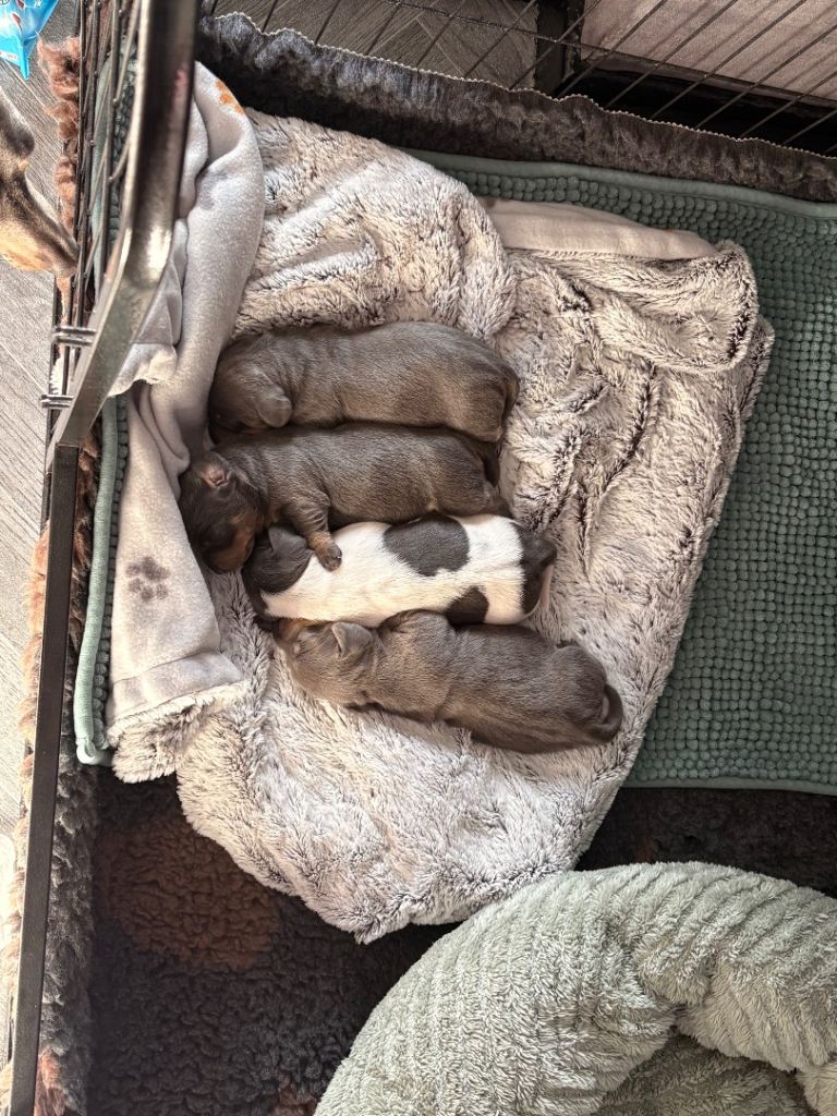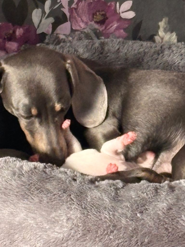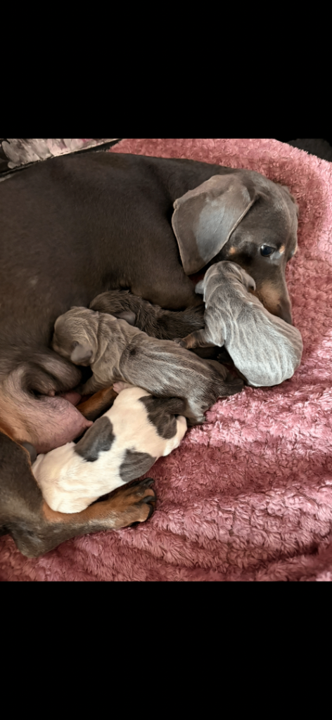 My beautiful family dogs have had 4 beautiful puppies ๐ถ (mum can be seen) dad has gone to my family member while pups are small so mother isnโt stressed out,