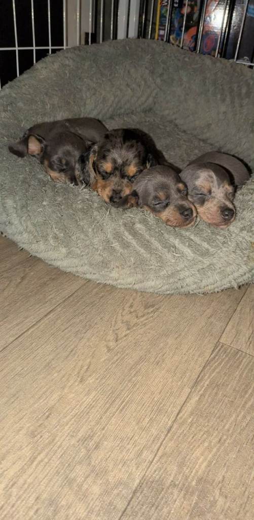 Mum is a black and tan- KC registered dachshund who is very well trained, socialised and happy with any dog or person, her favourite people are the children.
