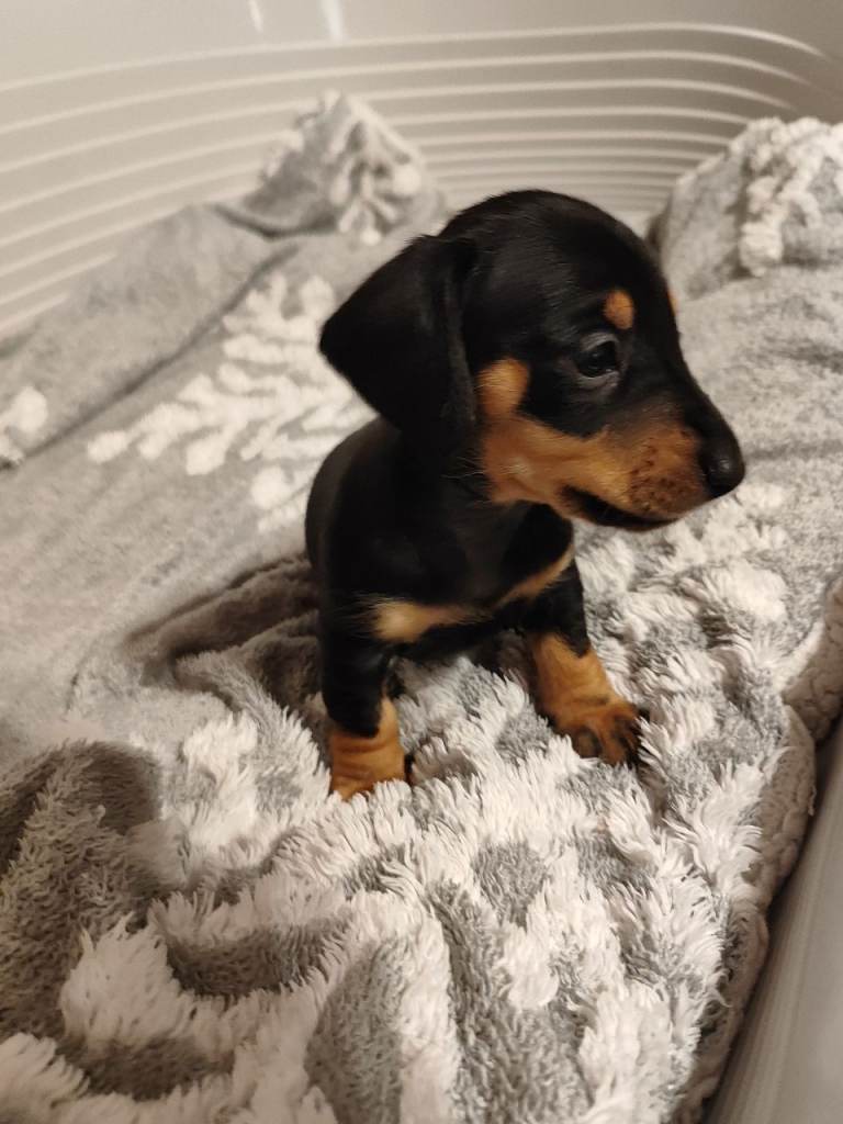 1 Miniature Dachshund Boy available black and tan will be available at 10 weeks after vet check second vacs and microchip are done mum and dad are in the pics